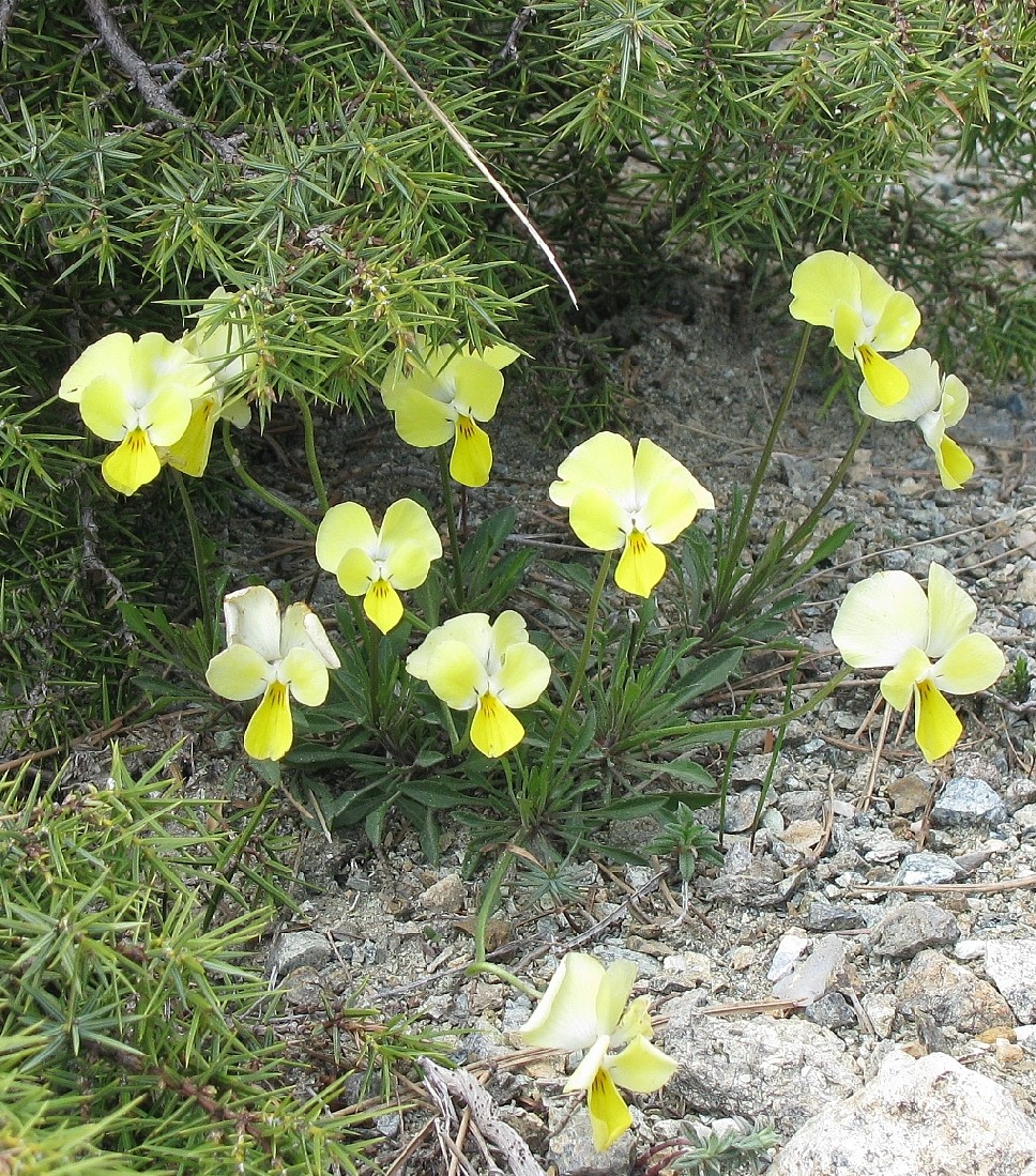 Verbreitung: Etymologie: Endemit der Vourinos Mountains und des Mt. (Nordgriechenland)Viola vourinensis gehört zur Viola graeca- Gruppe (nach: M. Erben, "Cytotaxonomische Untersuchungen an südosteuropäischen Viola- Arten der Sektion Melanium" (1985) S. 478.) |