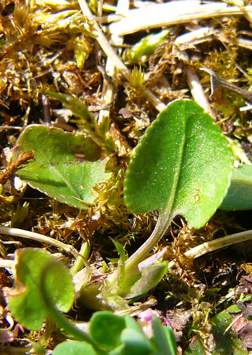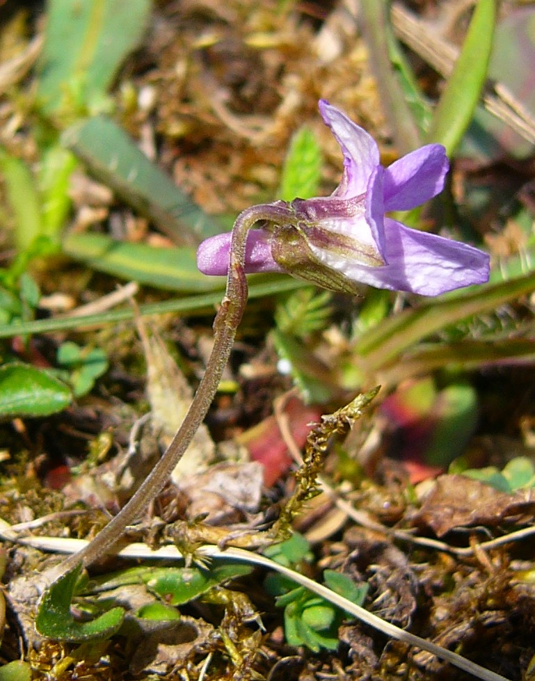 Viola - Kelchblätter spitz, Blüten +/- blauviolett, Sporn violett, Grundblattrosette vorhanden, Blätter nur 1 - 2 cm lang