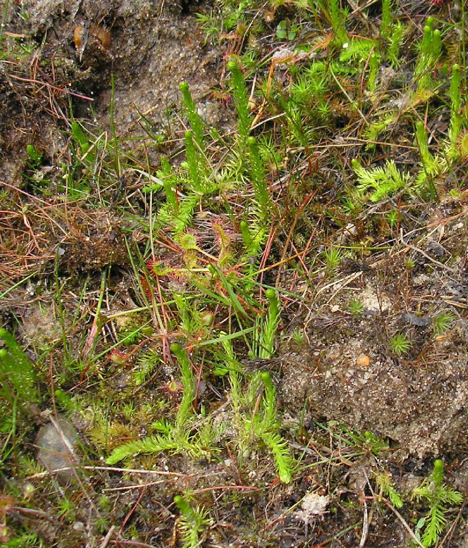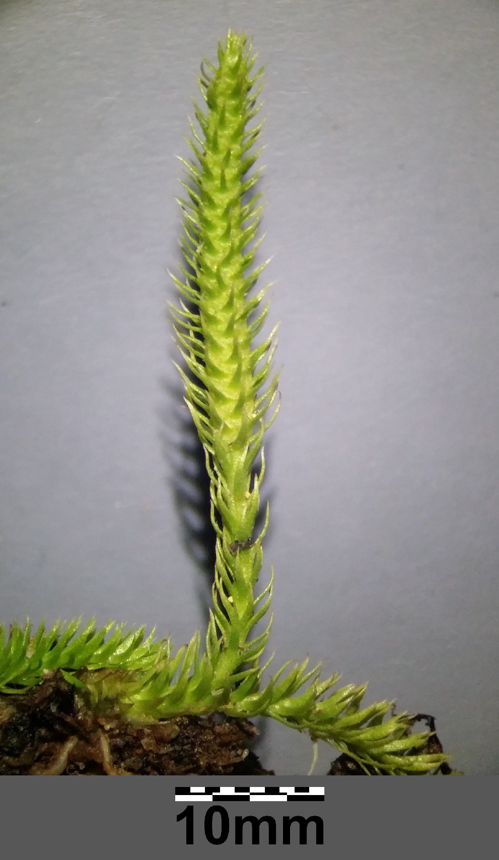 1 Pflanze mit kurzem, kriechendem Hauptspross, Sporangienträger undeutlich vom Spross abgesetzt