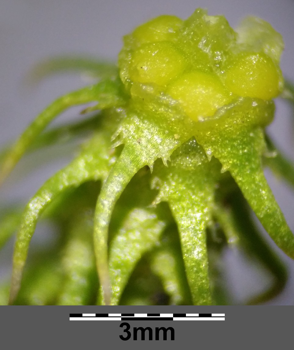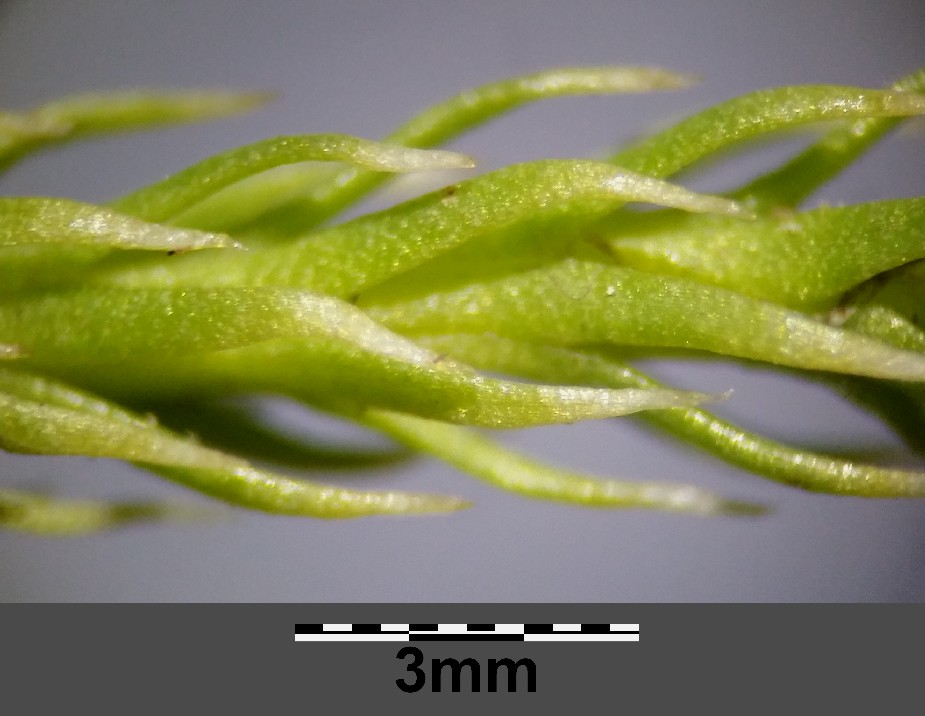 Blätter schmal lanzettlich, bleichgrün, 5 – 7 mm lang, abspreizend