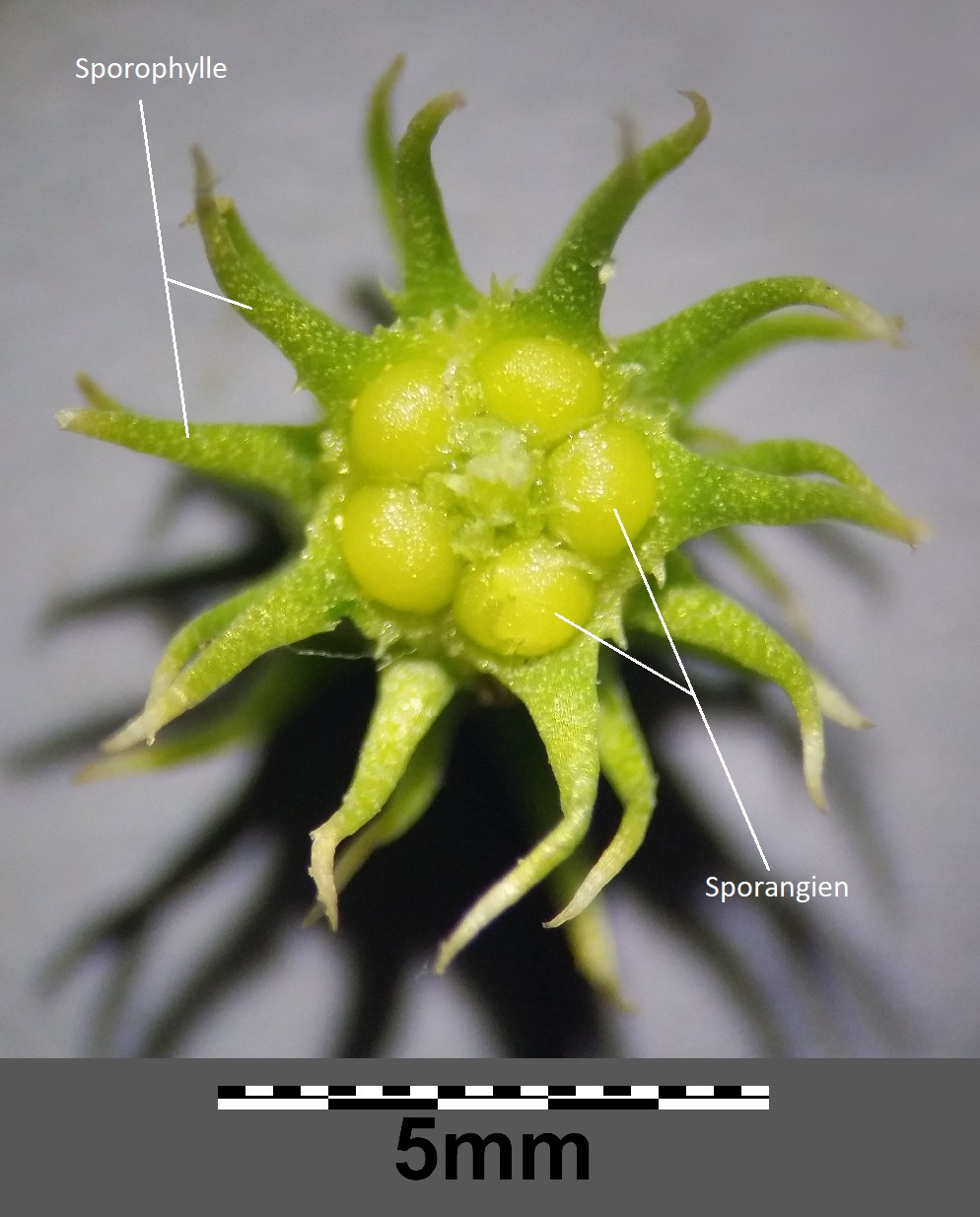 Sporangien rundlich, in Ebenen angeordnet, in den Achseln der Sporophylle