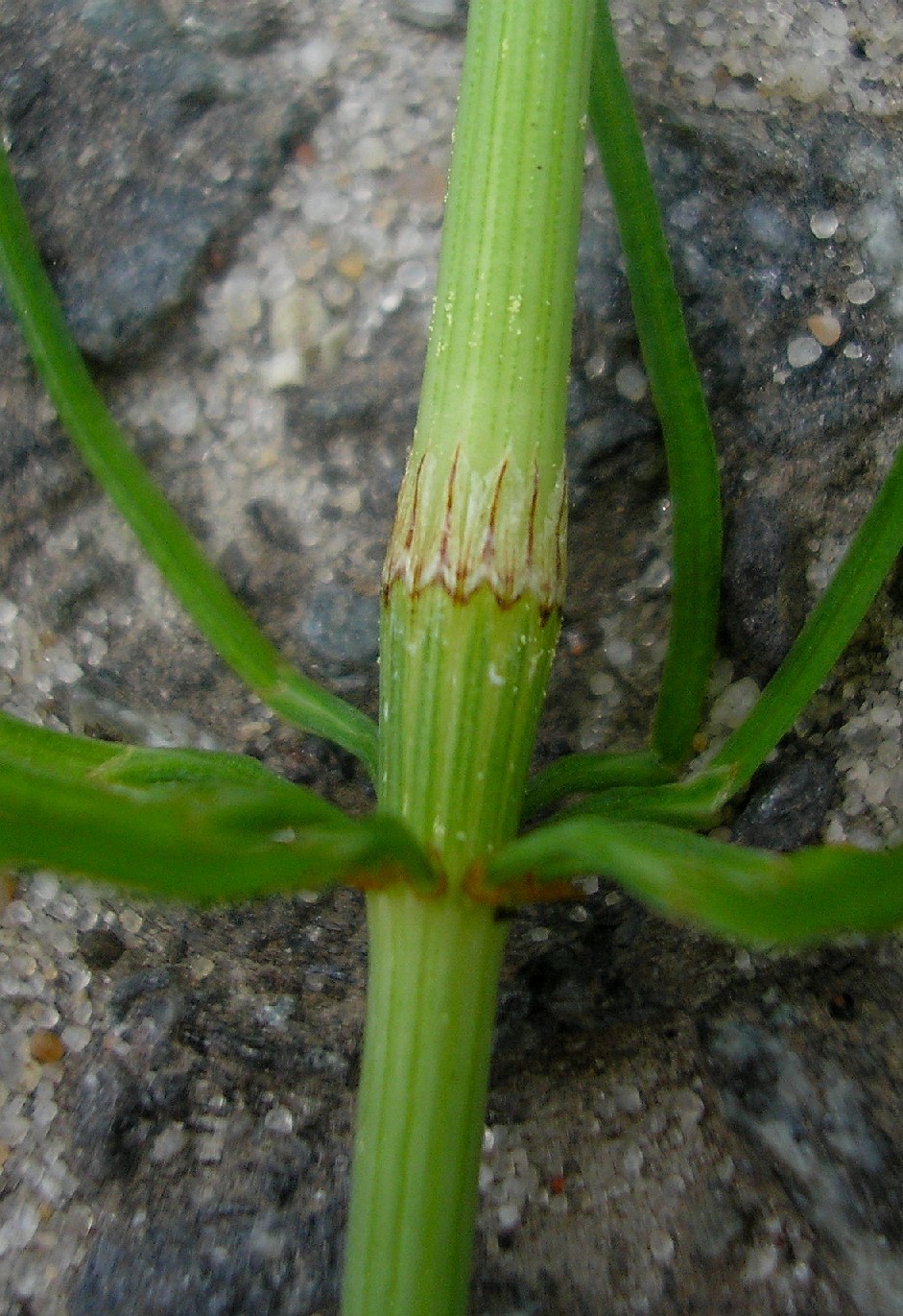 Asthülle gelblich, Stängel mit 12 - 14 Rippen 1. Seitenastinternodium der oberen Seitenäste länger als die zugehörige Stängelscheide 1. Seitenastinternodium der unteren Seitenäste kürzer als die zugehörige Stängelscheide
