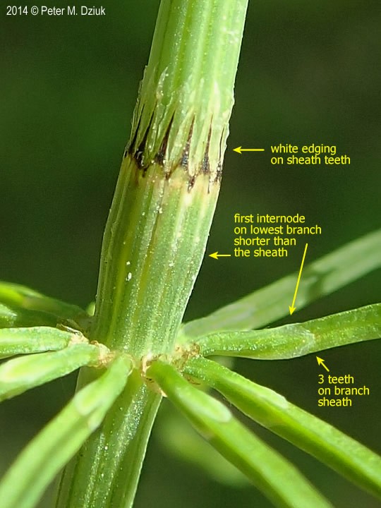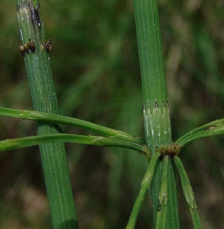 Schachtelhalme - Ähren stumpf, Seitenäste unverzweigt, Stängelscheiden mit 4 - 15 Zähnen, Zentralhöhle weit