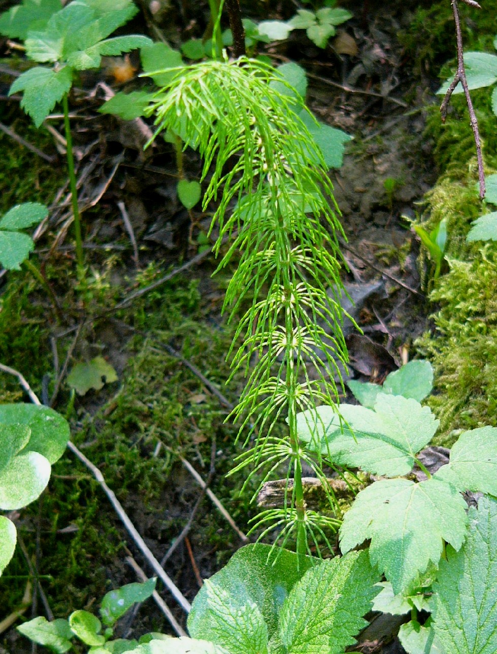 Quirlästige, grüne unfruchtbare Sprosse gleichzeitig mit ährentragenden Sprossen erscheinend Junge Äste hängend, unverzweigt Ältere Äste waagrecht