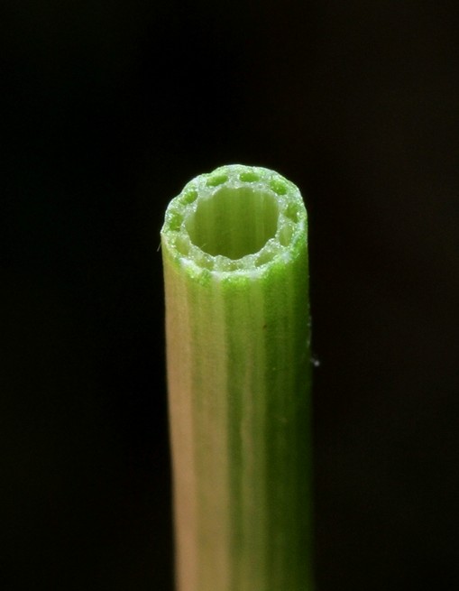 Pflanze 15 - 50 cm groß Beim Aufbrechen des Stängels kein weißer "Darm" sichtbar (Jedes Leitbündel hat einen eigenen Endodermisring), Zentralhöhle weit Stängel deutlich gefurcht