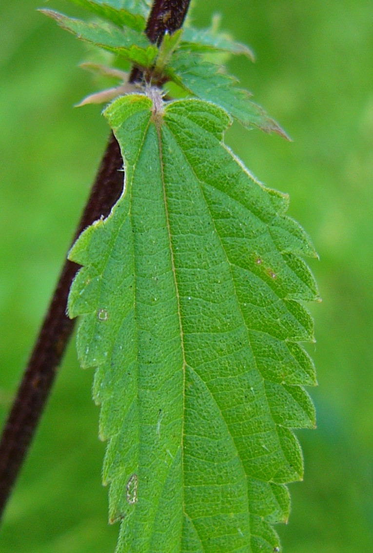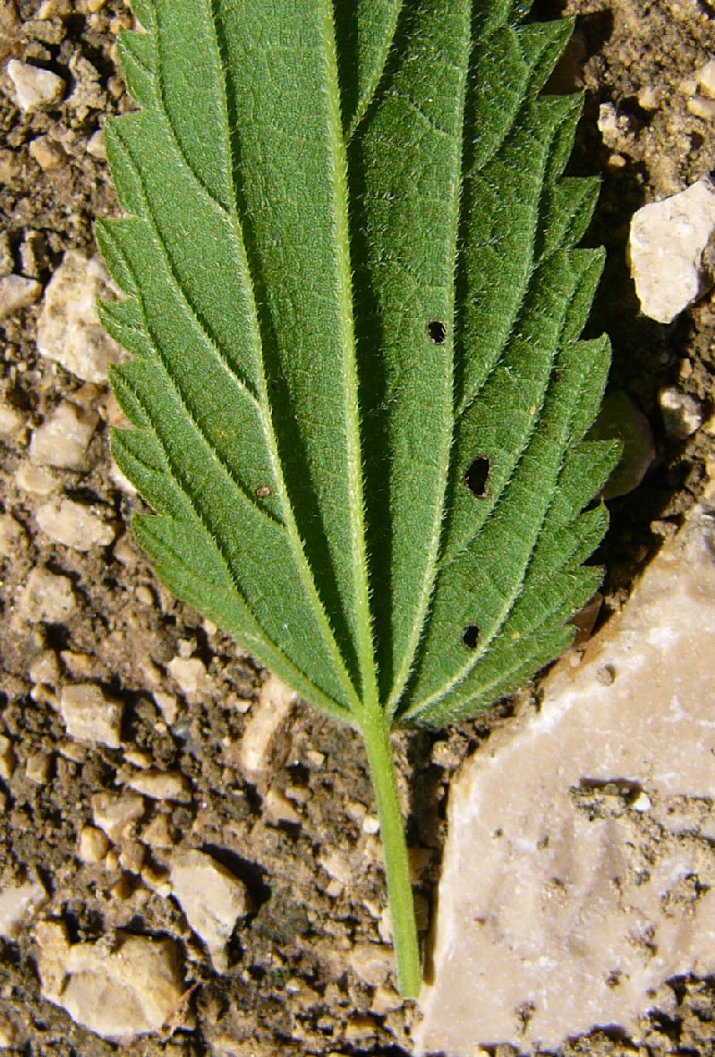 Blätter länglich- eiförmig, zugespitzt, gesägt, oft länger als 5 cm, mit feinen kaum sichtbaren Brennhaaren