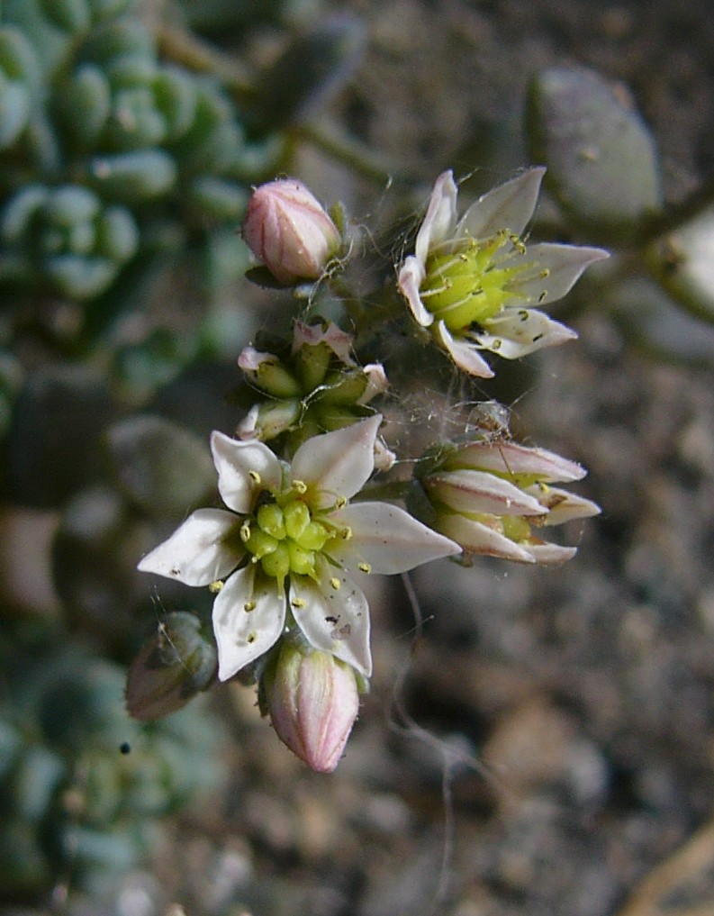 Blüten meist mit 4 - 5 (6) Kronblättern Blätter flach oder halbstielrund, nie in kugeligen Rosetten > Blüten meist mit 4 - 5 (6) Kronblättern |