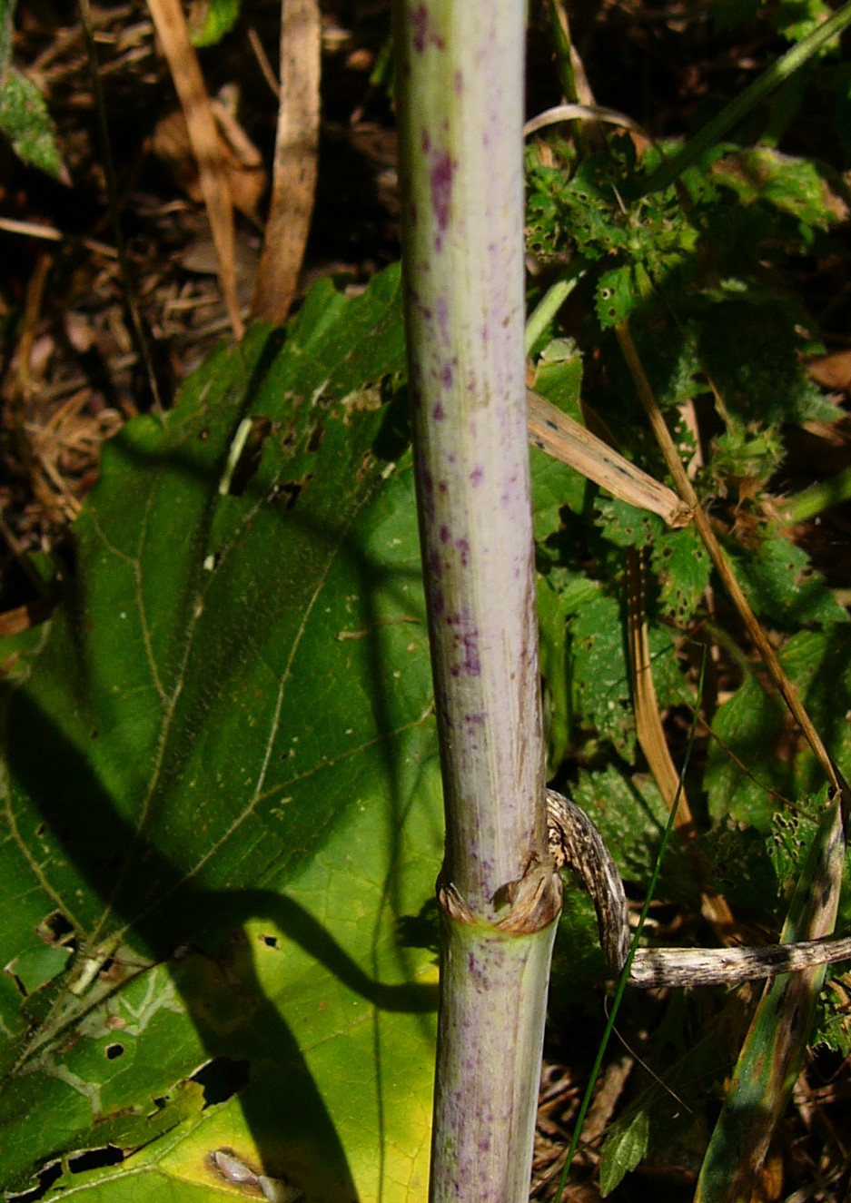 var. leiocarpum; Stängel rund, kahl, oft blau bereift, unten rot gefleckt
