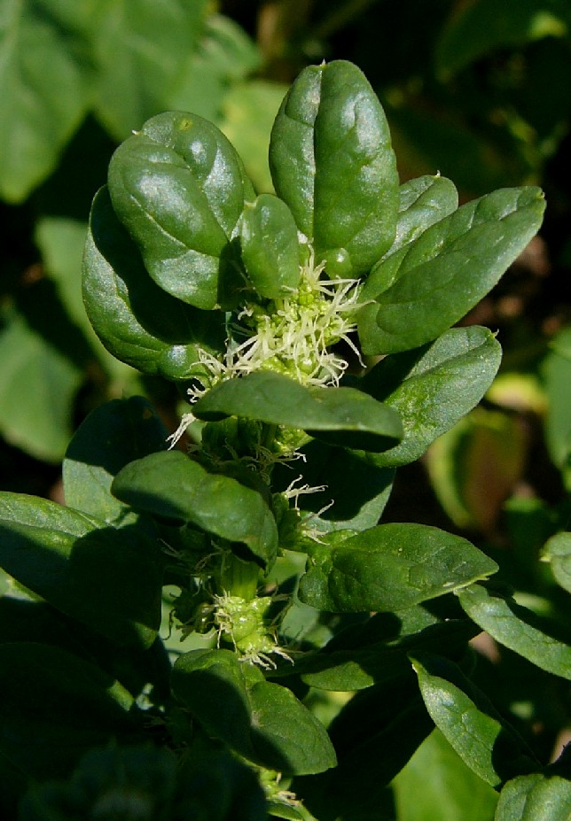 Männliche Blüten in unbeblätterten Knäueln Obere Stängelblätter kurz gestielt bis sitzend,