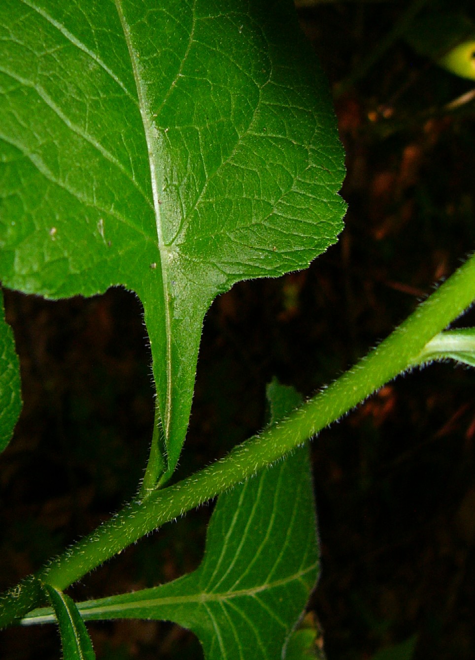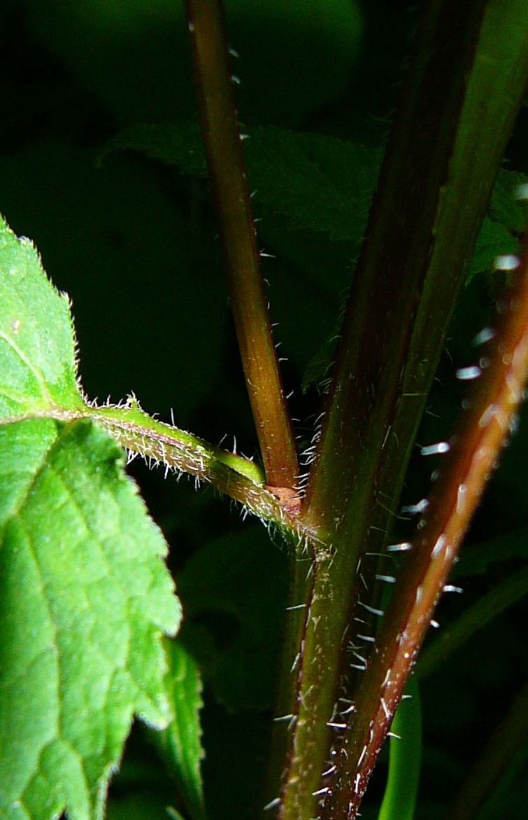 Obere Blätter sitzend Untere Blätter am Grund oft herzförmig, lang gestielt, scharf gesägt Stängel borstig behaart, scharfkantig, untere Blätter lang gestielt
