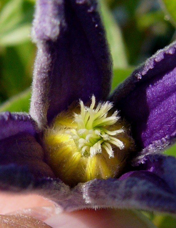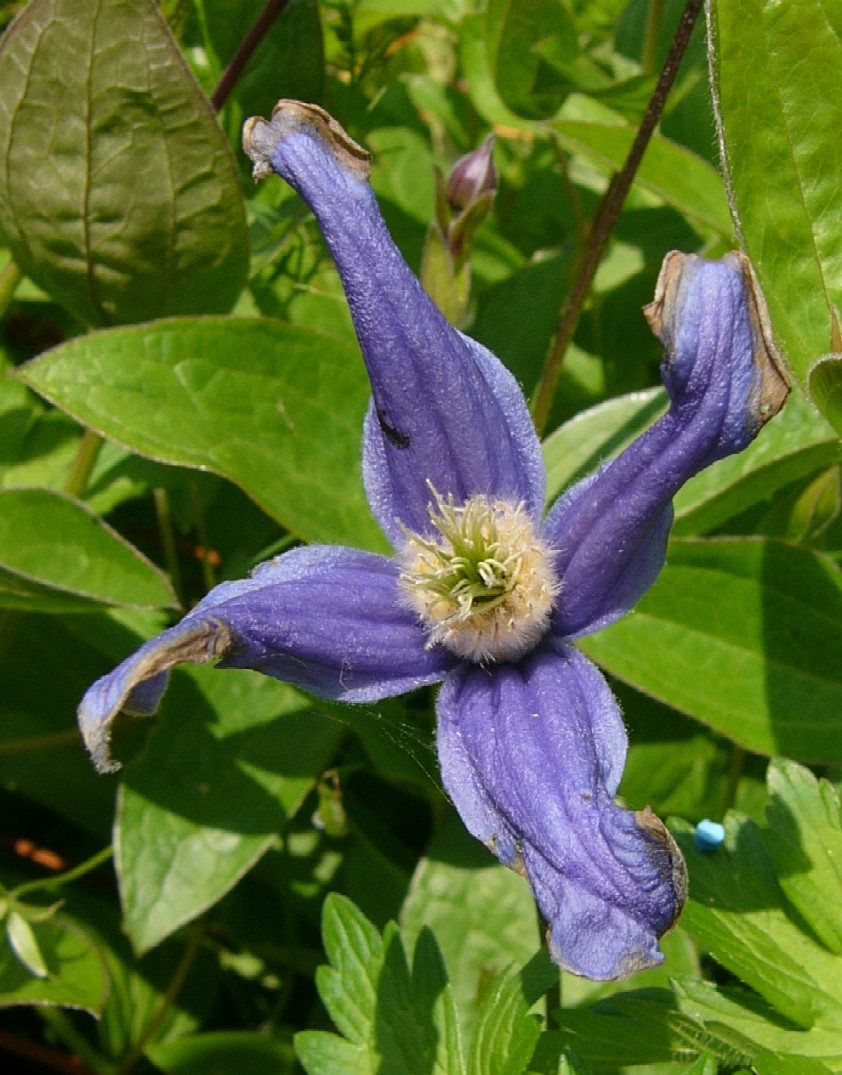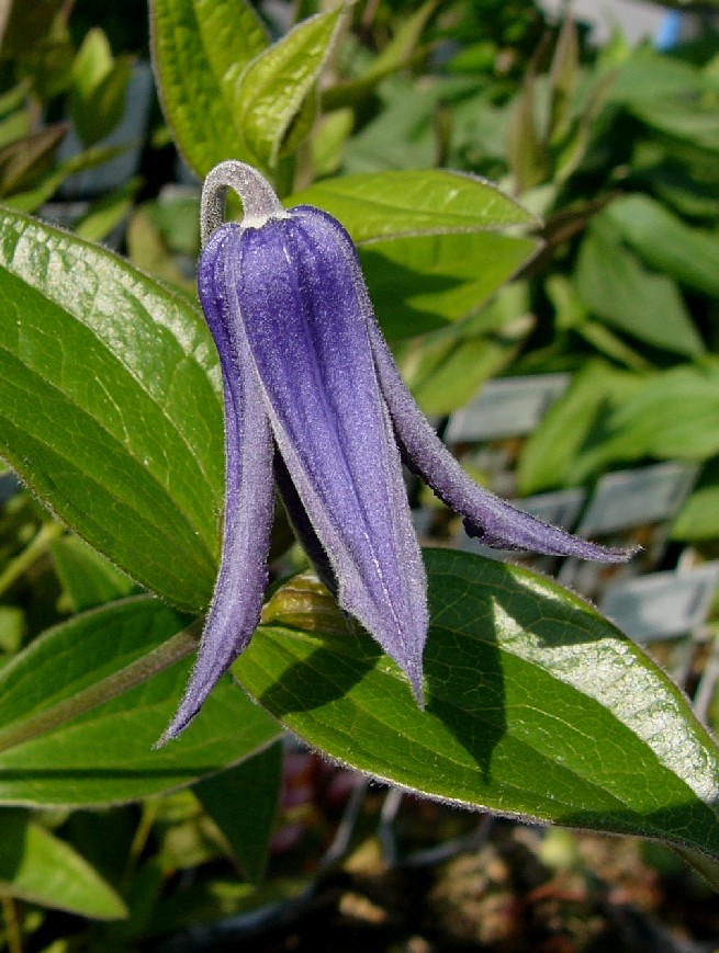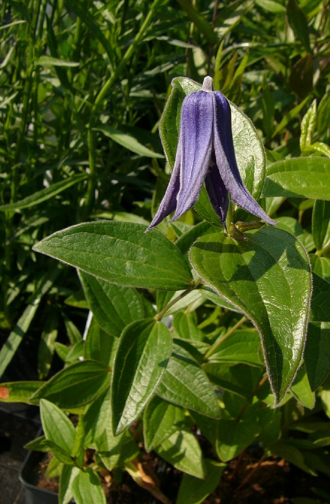 Pflanze maximal 1 m hoch strauchartig oder staudenähnlich, nicht kletternd, zuletzt oft niederliegend Blüten blau oder violett, meist einzeln, lang gestielt, endständig, glockig, hängend oder nickend, meist 4 Perigonblätter Griffel und Staubblätter dicht behaart Perigonblätter behaart