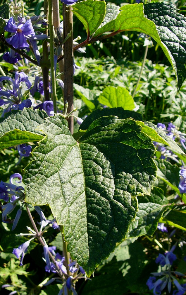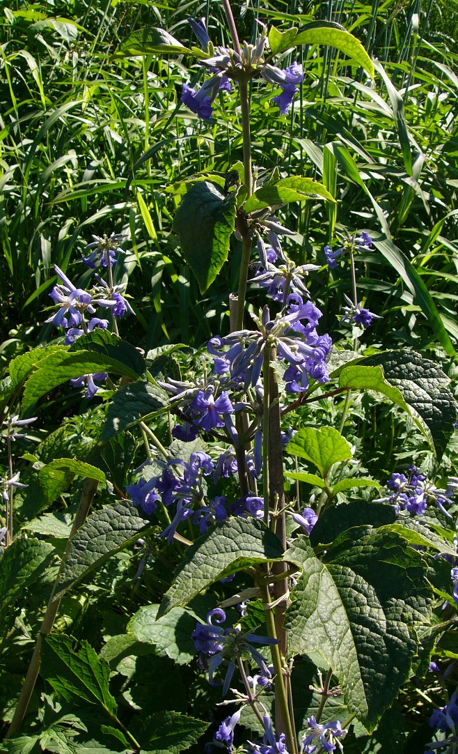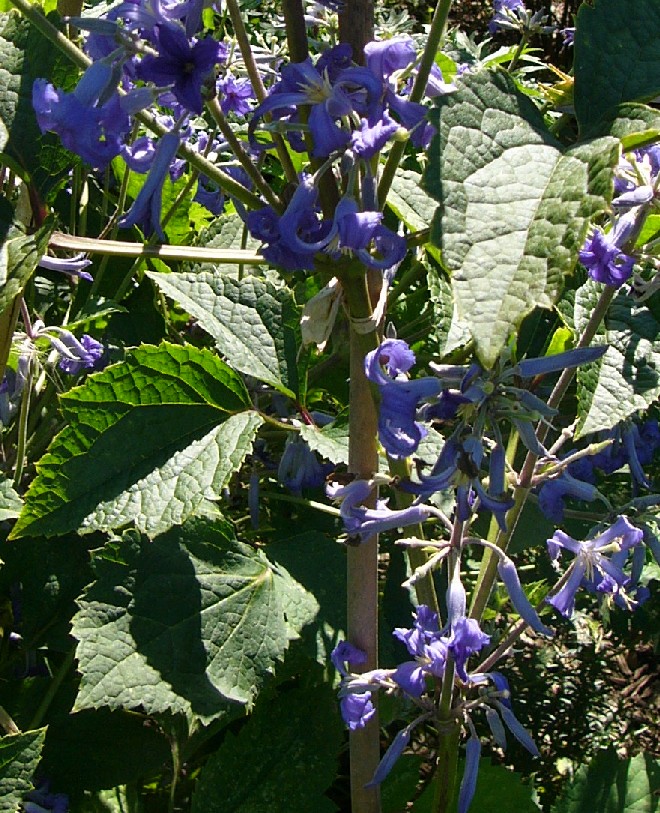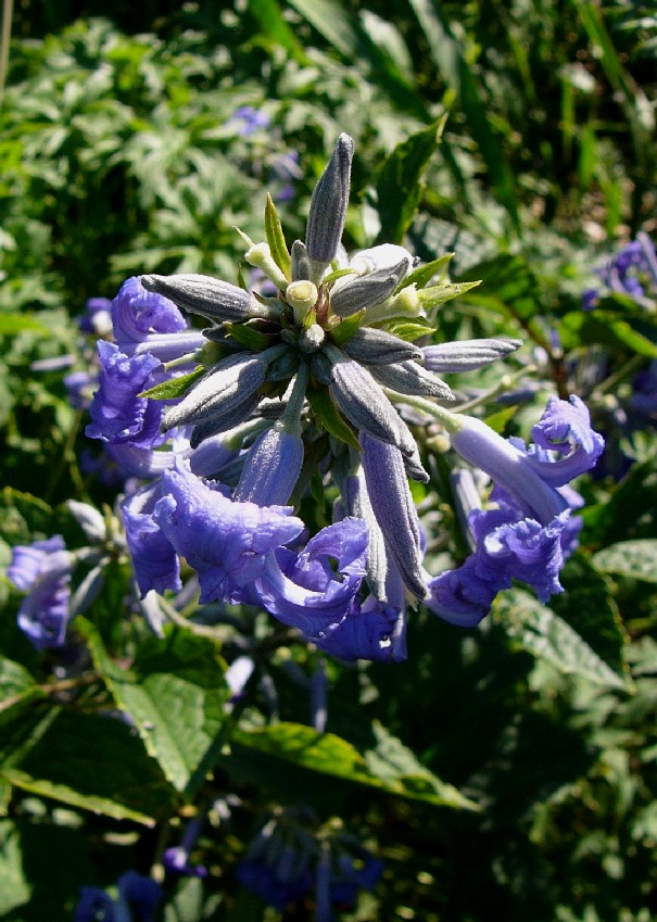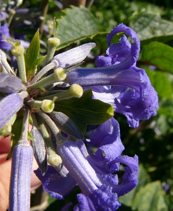 5 m hoch Blüten hyazinthenförmig, blau oder violett, die 4 (- 6) Perigonblätter im unteren Teil zu einer Kronröhre verwachsen, darüber erweitert, Saum ausgebreitet Perigonblätter, Griffel und Staubblätter dicht behaart Früchte behaart, Griffel nur ca. 1 mm lang
