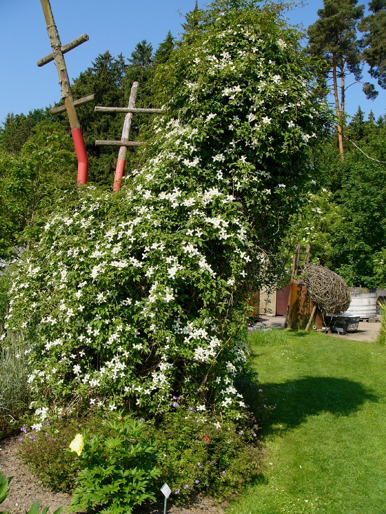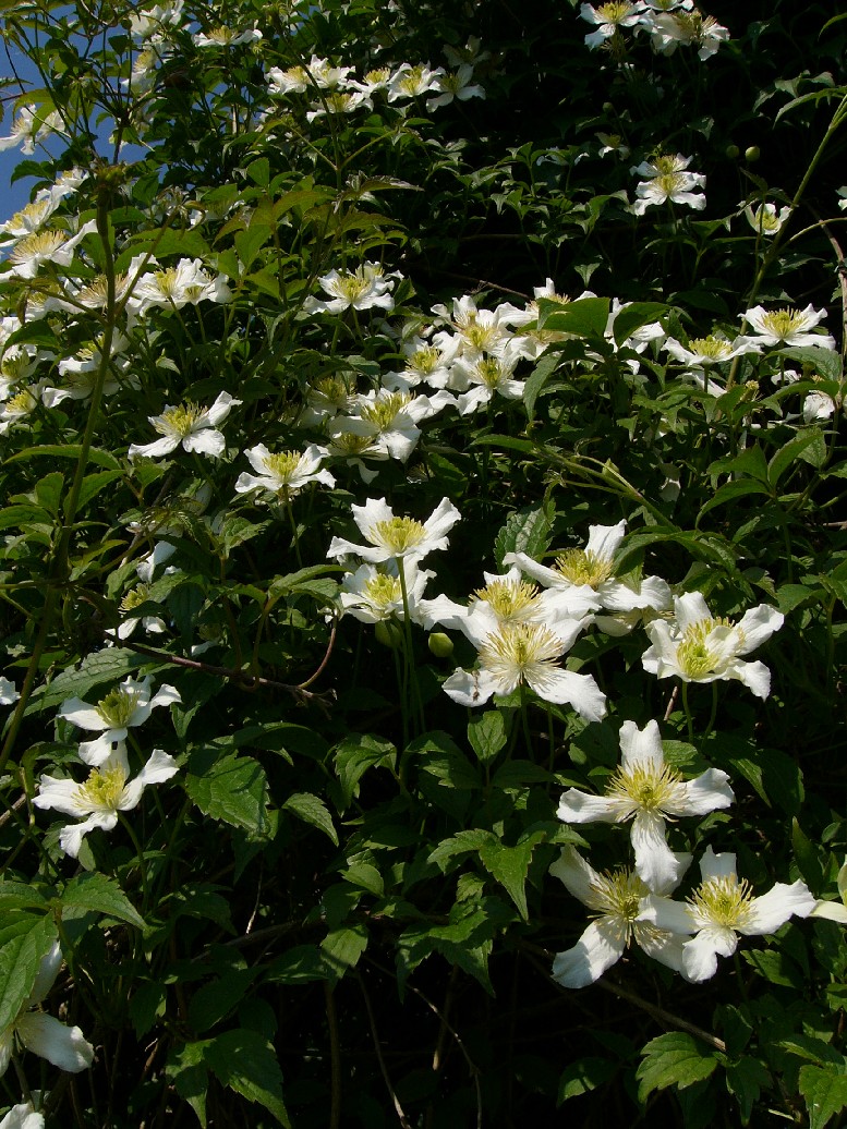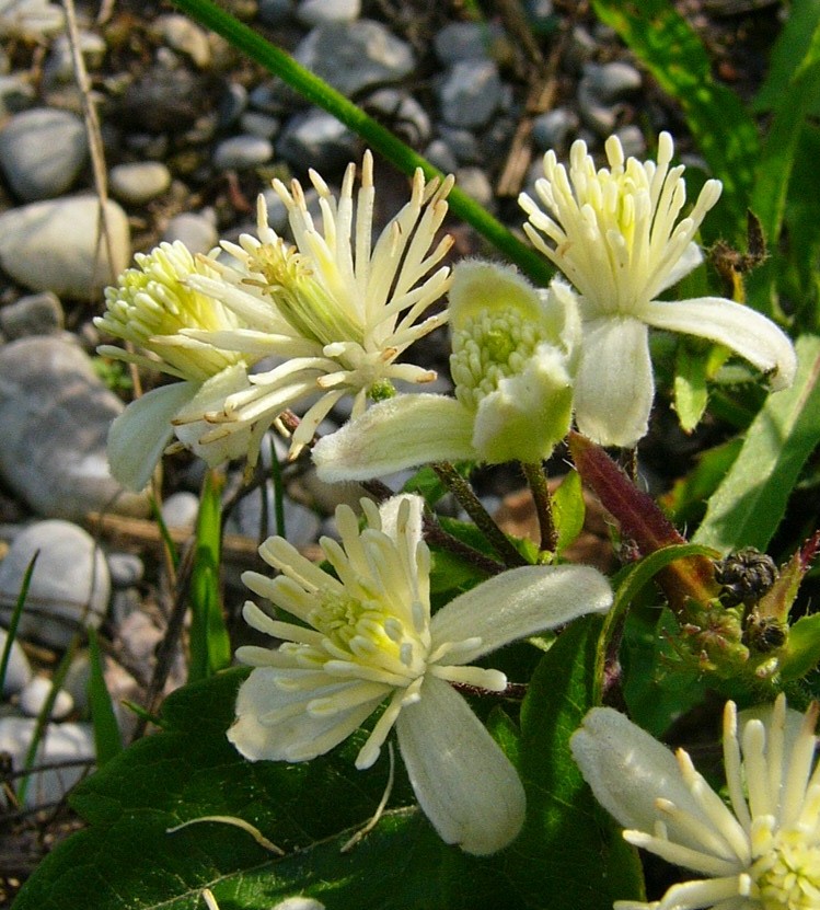 Pflanze kletternd, bis 20 m lang Blüten 3 - 4 cm im Durchmesser Früchte mit federig behaartem Griffel
