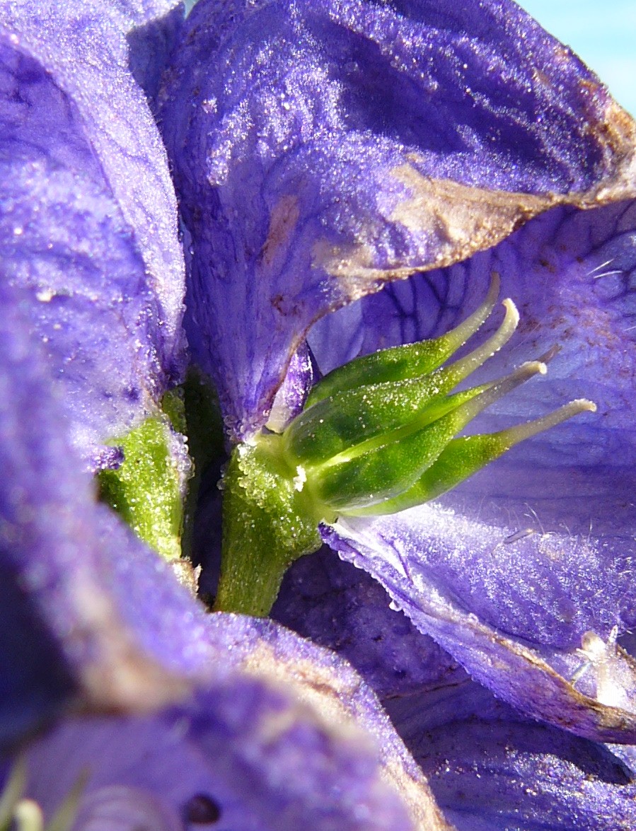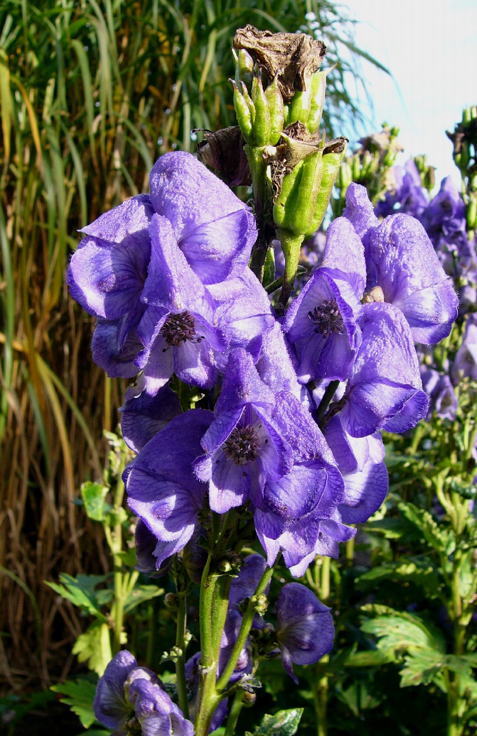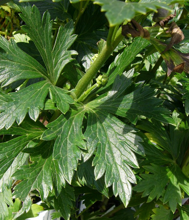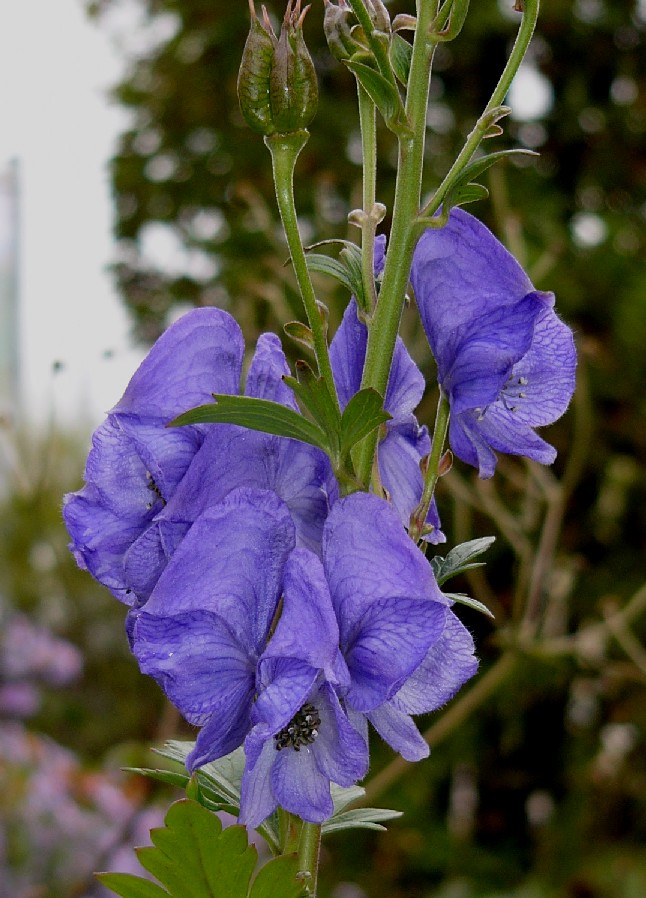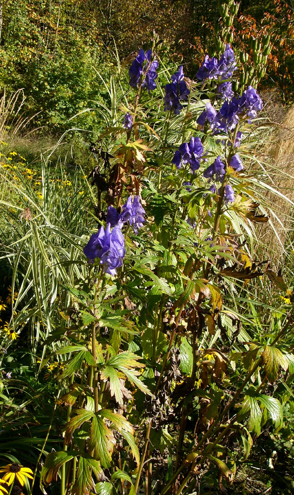 Eisenhut- Blüten blau, Blätter nicht bis zum Grund geteilt