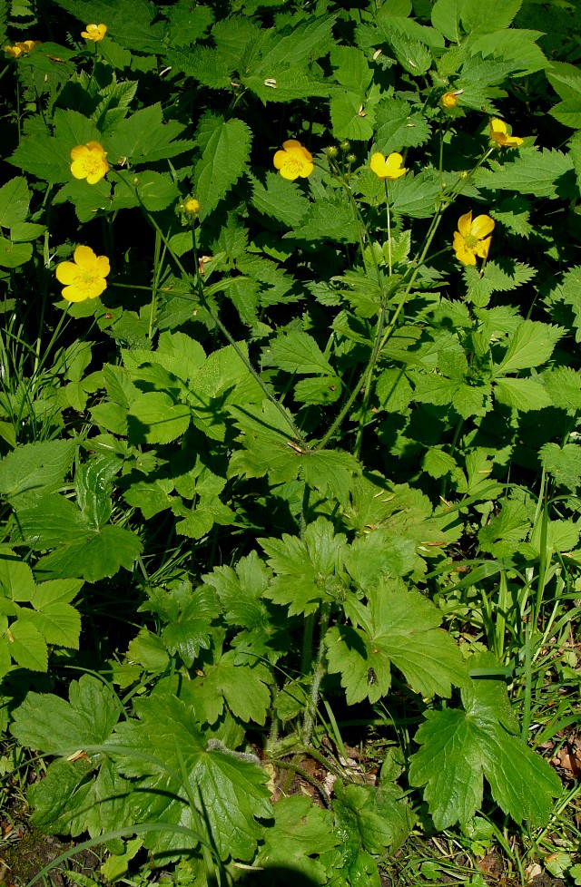 - Blüten gelb, Blütenboden kaum erhöht, Kelchblätter anliegend, Blätter gelappt,