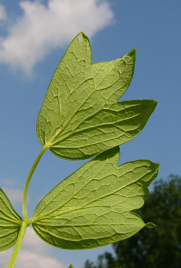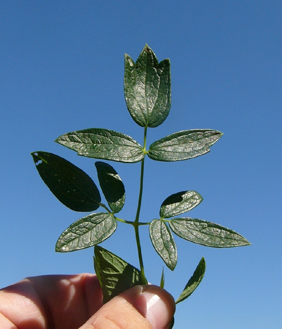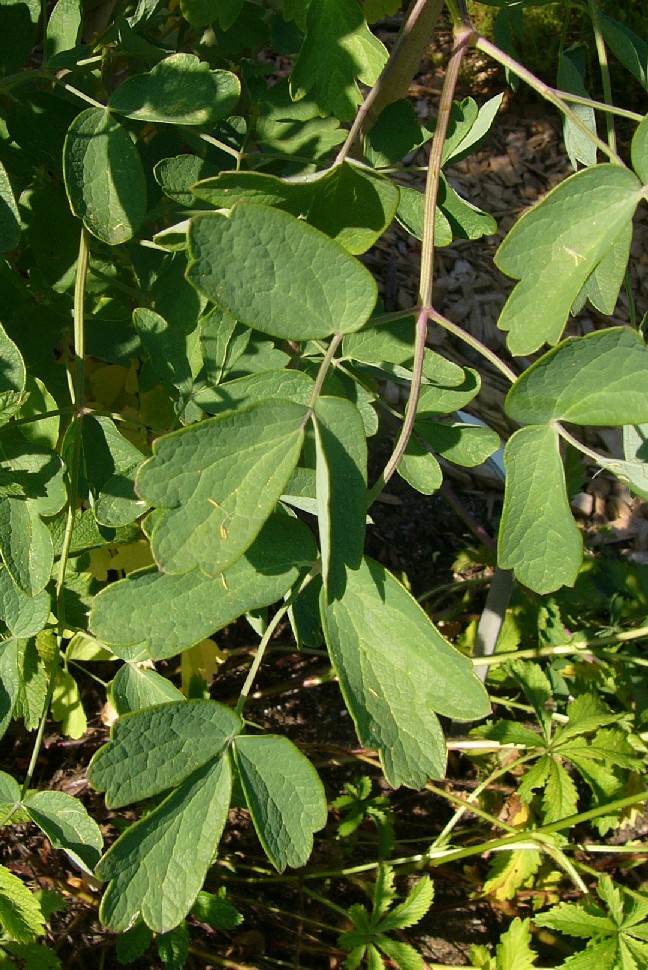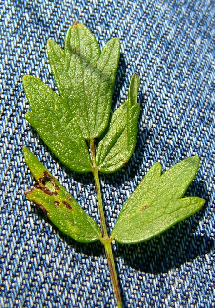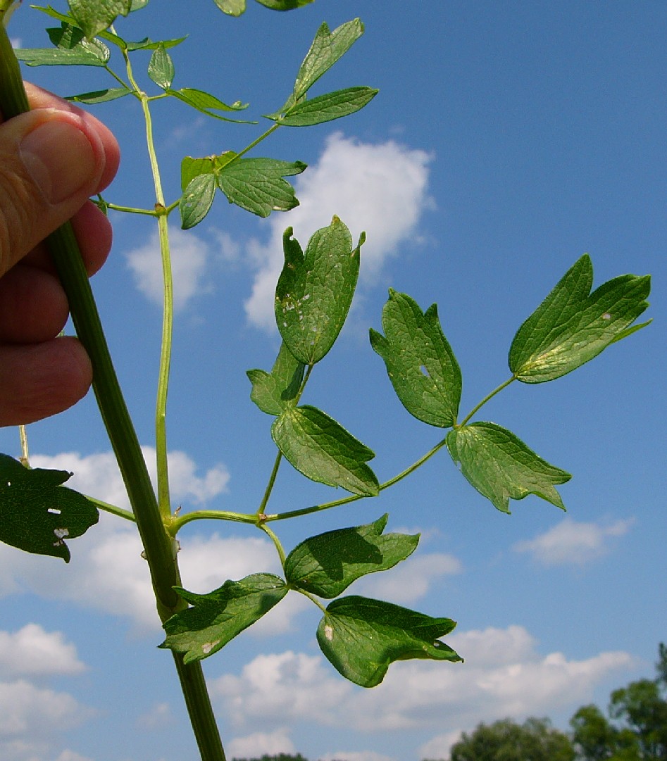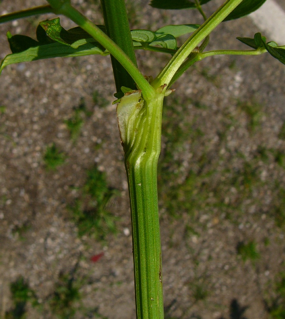 Stängel kahl, gerieft, Blätter mit häutigen Nebenblättchen Blätter 2 - 3- fach gefiedert Fiederblättchen 3 (-5)-spaltig Blattunterseite heller, kahl, aber nicht blaugrün bereift