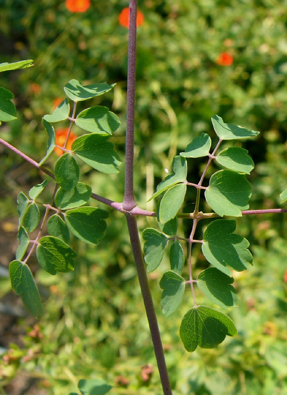 mit 4 (-5) lila, rosa oder weißlichen Perigonblättern, Staubfäden gelblichweiß Früchtchen deutlich abgeflacht, fast 2-flügelig, sitzend oder kurz gestielt Stängel kahl Blätter 2 - 3- fach gefiedert, kahl Fiederblättchen vorne +/- gelappt, seitlich ganzrandig