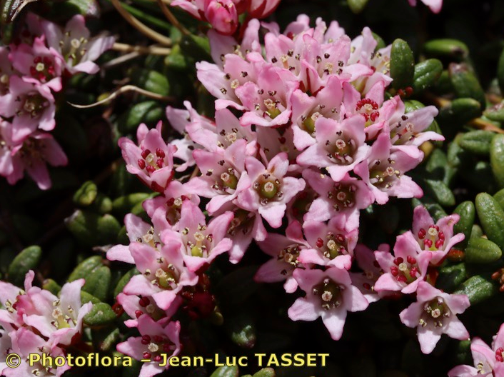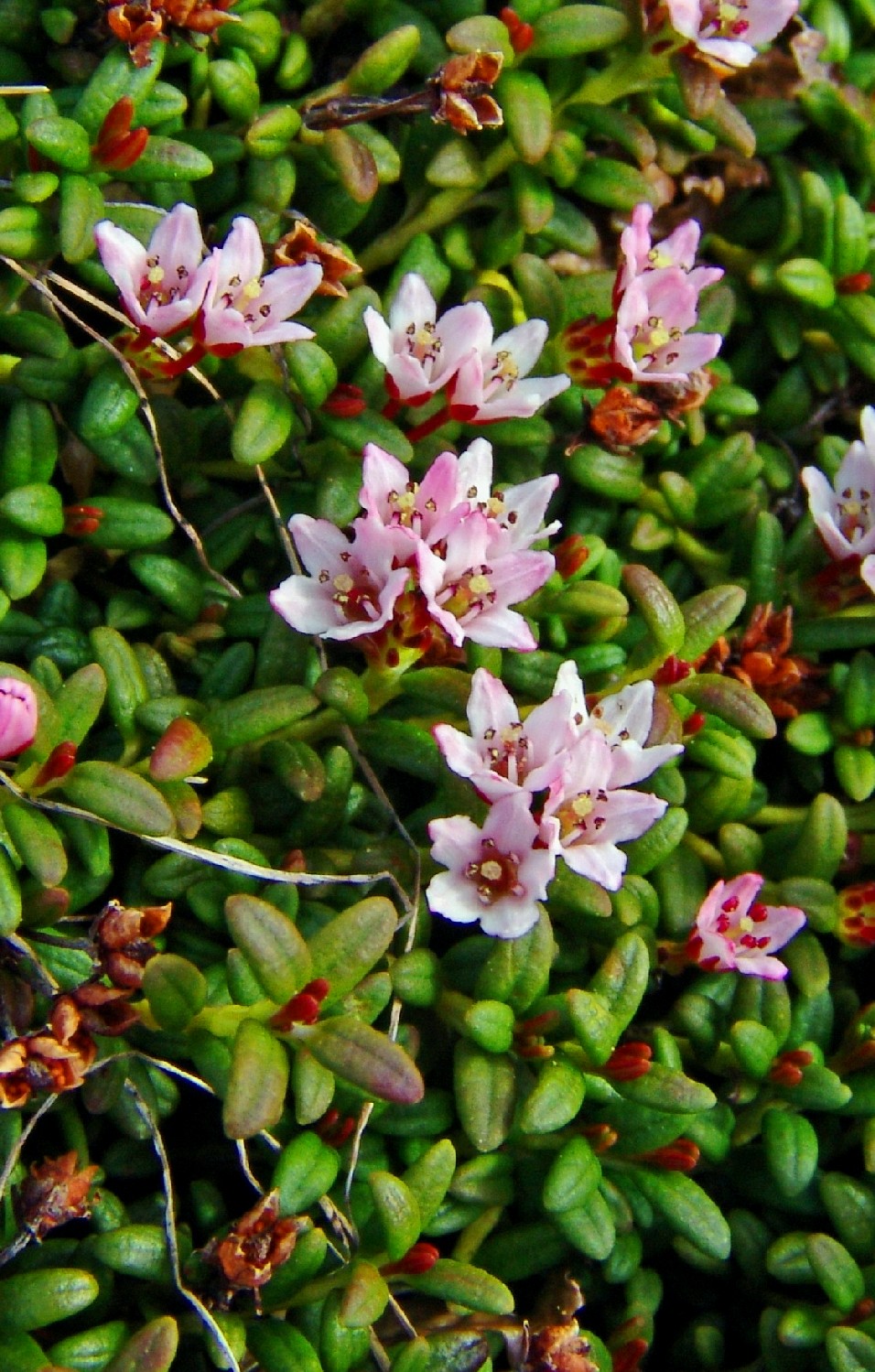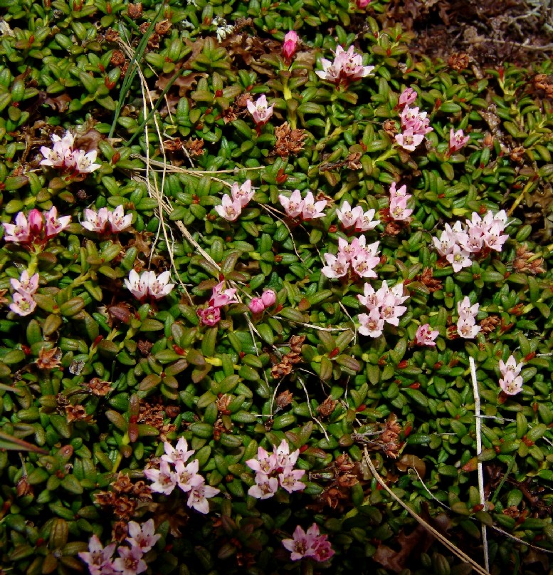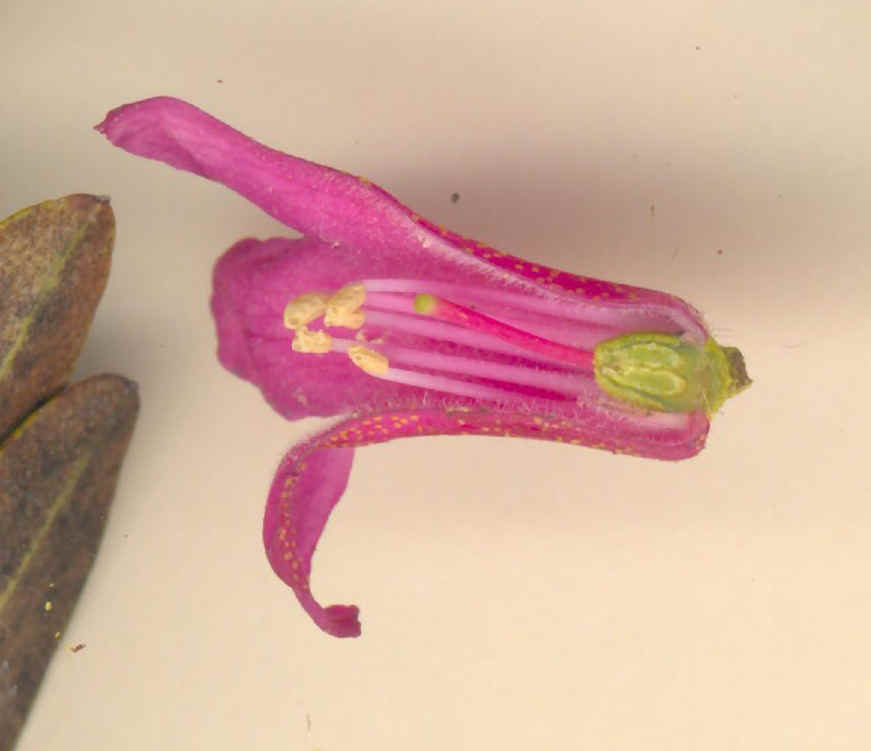 Krone hellrosa, weitglockig, 4 - 5 mm im Durchmesser, im unteren Teil verwachsen, 5 Kronzifpfel, 5 Staubblätter, Griffel 1,5 mm lang, Narbe kopfig