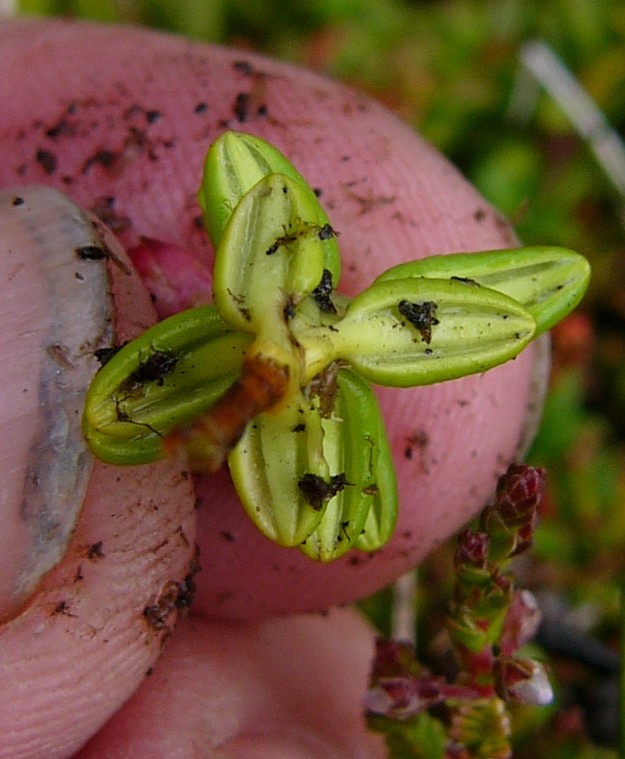 Pflanze 5 - 15 cm groß, immergrün Blütenstand traubig, mit 2 - 10 Blüten Beeren 5 - 10 mm im Durchmesser, kugelig, rot, essbar Blätter elliptisch, 20 mm lang, 12 mm breit, immergrün, ledrig,