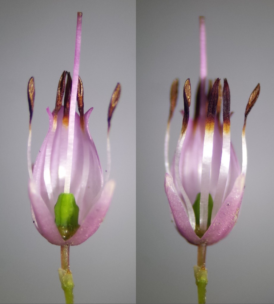 Antheren 1 - 1,5 mm lang, Theken parallel, mit weißlichem, gezähntem Anhängsel