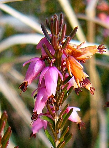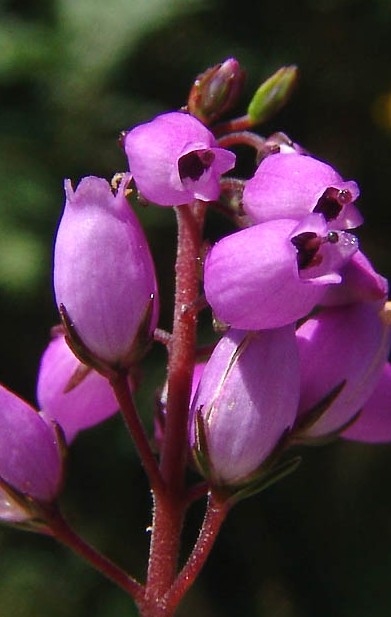Krone 5 - 8 mm lang, urnenförmig, rosa, Kronzipfel 0,8 mm lang, aufrecht oder zurückgebogen, Staubblätter in der Krone eingeschlossen