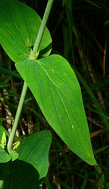 Drüsen Stängel und Blätter kahl Blätter breit 3-eckig, sitzend, am Grunde am breitesten, am Rand ohne schwarze Drüsenpunkte, die unteren mit durchscheinenden Punkten
