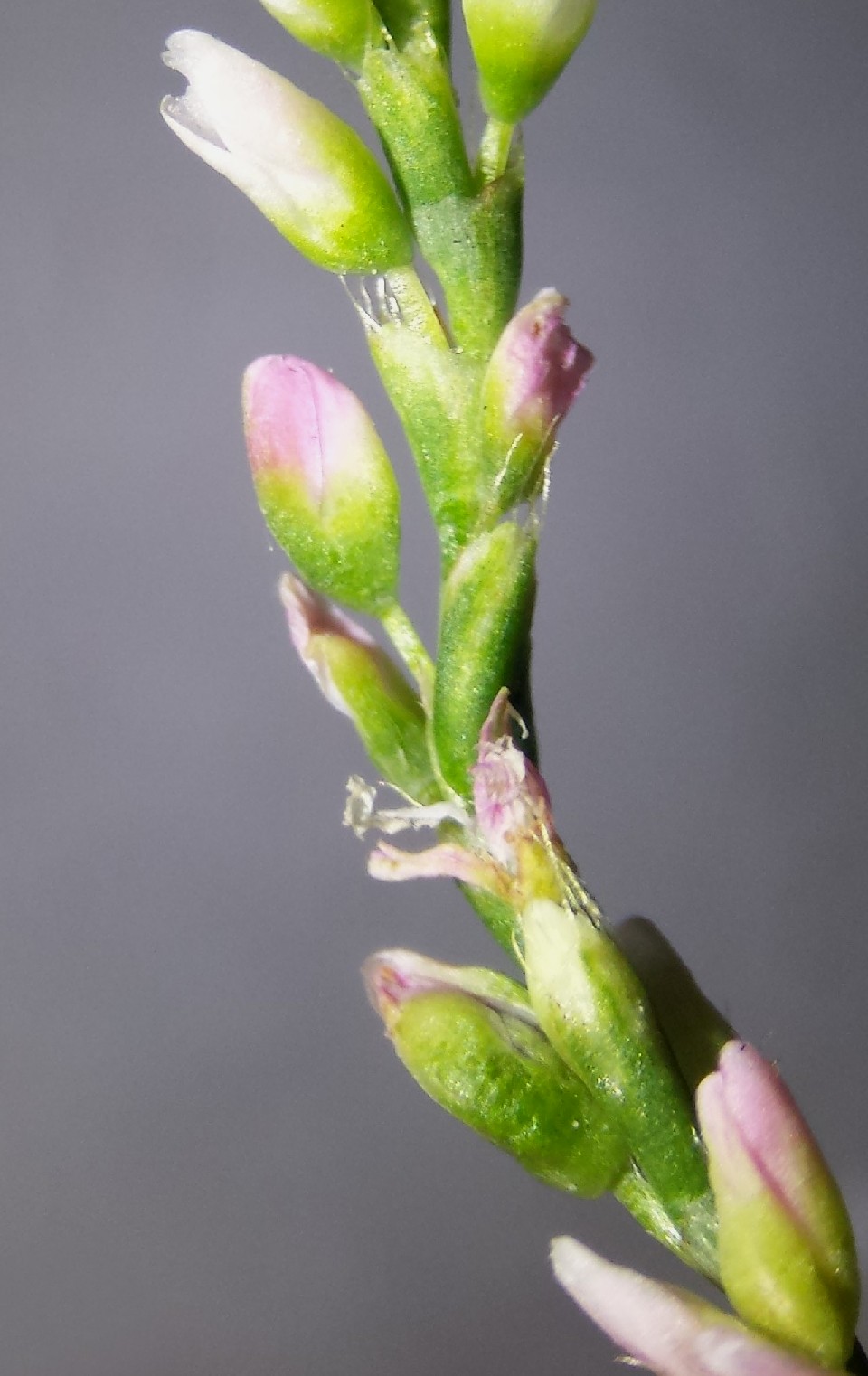 Scheinähren 2,5 - 4 cm lang, Blüten weiß bis intensiv rosa, ca. 3 - 4 mm lang, meist drüsenlos, meist 5 Blütenblätter, 6 Staubblätter