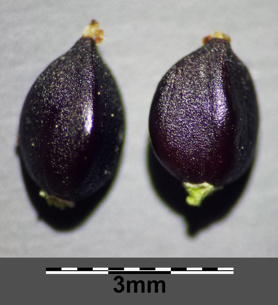 Nüsse 1,5 - 2 mm lang, +/- glatt, stark glänzend