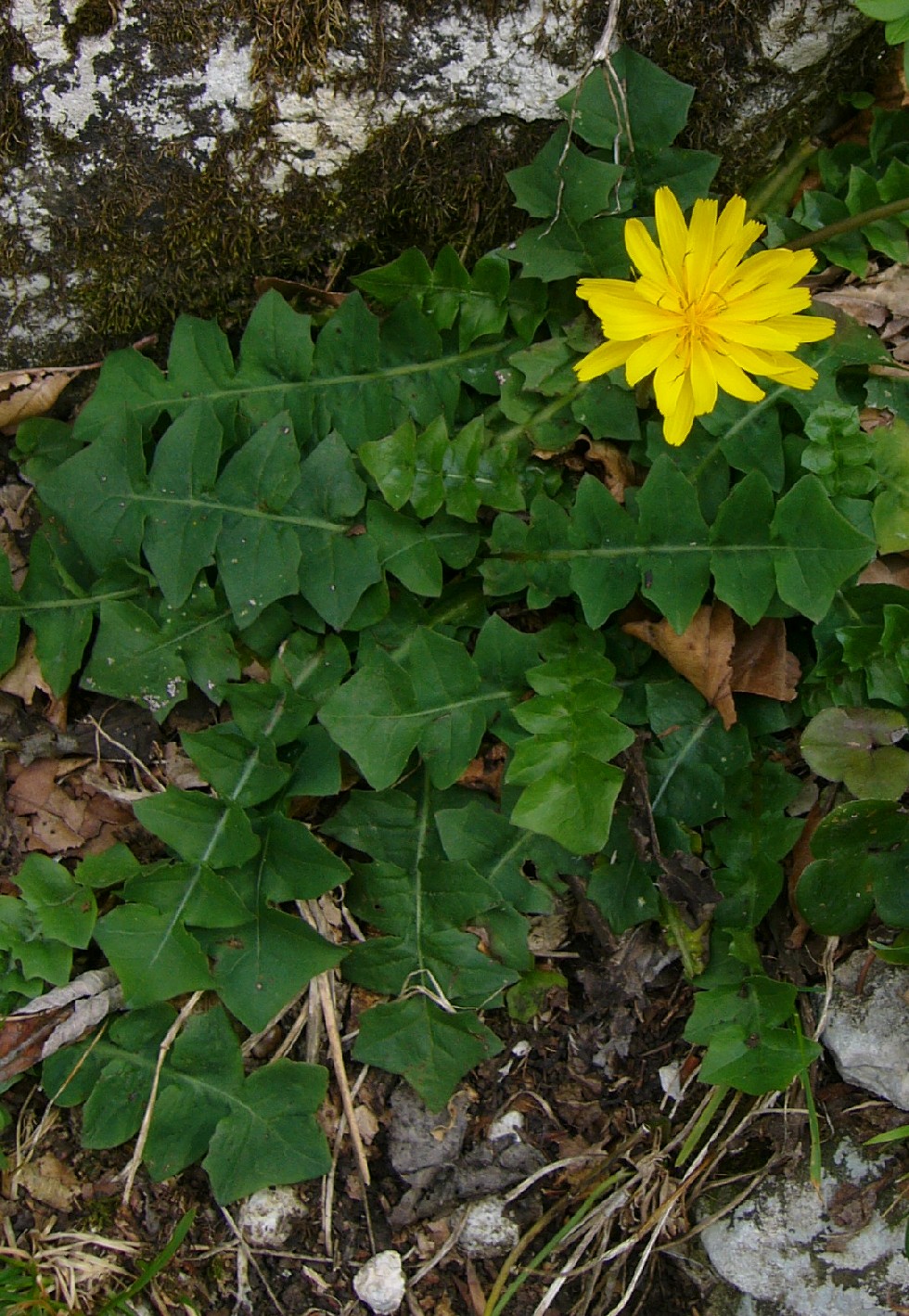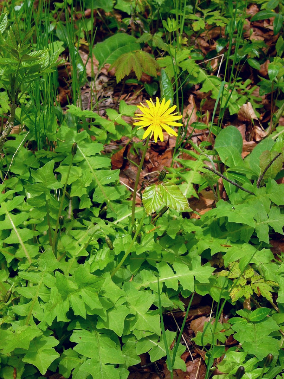 Laubblätter 10 cm lang, schrotsägeförmig mit trapezförmigem Seitenlappen und 3-eckigem Endlappen