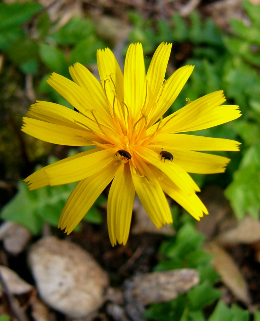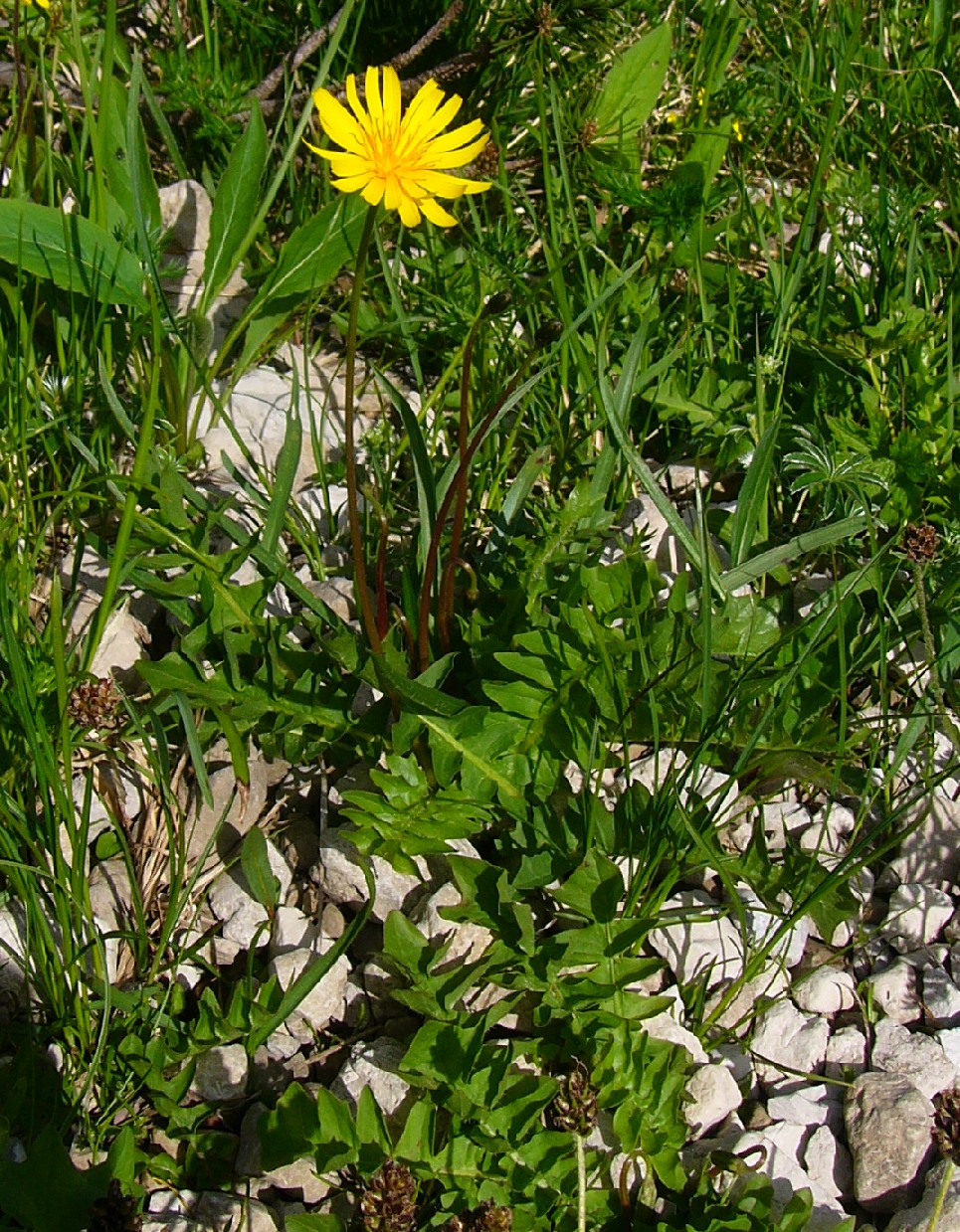 Pflanze 5 - 30 cm groß Köpfchen einzeln, Hülle 2- reihig, ca. 10 mm lang, dunkelgrün, Köpchen 2,5 - 4 cm im Durchmesser, Zungenblüten gelb Früchte ohne Pappus