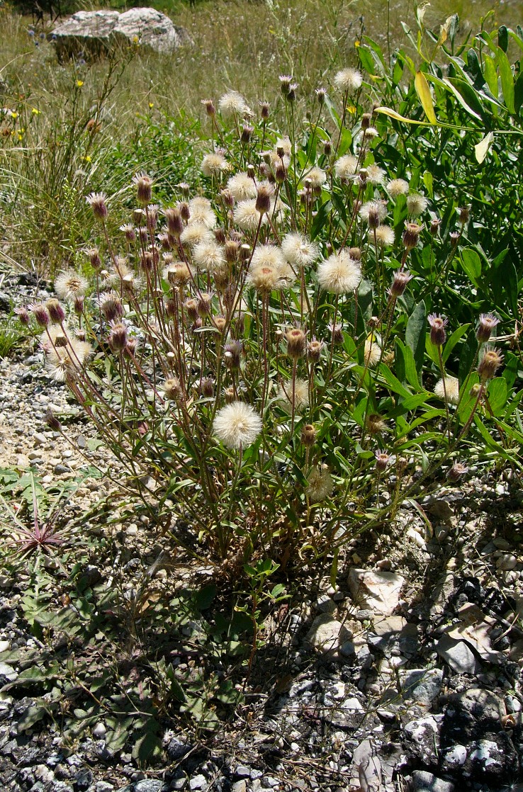 Hülle zylindrisch oder bauchig, kahl oder mit wenigen Haaren Früchte ca. 1mm lang, Pappus schmutzigweiß, nicht federig, ca. 2,5 mm lang Stängel vielblättrig, Blätter wechselständig, abstehend behaart