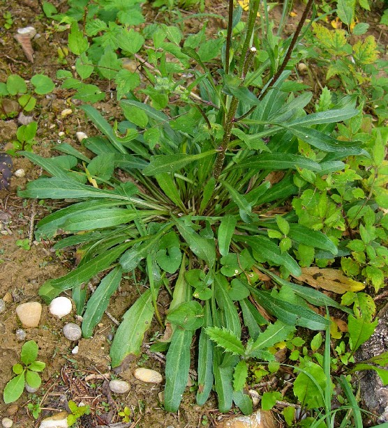Stängel nur im oberen Bereich verzweigt Körbchen mit 25 - 45 weißlichen oder hellvioletten