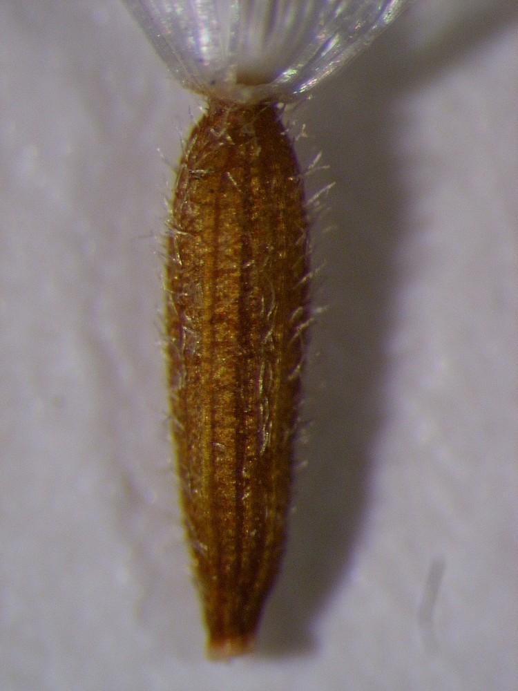 Köpfe ohne Außenhülle, Hüllblätter kahl oder im unteren Teil mit einigen abstehenden Haaren, mit grüner oder rötlicher Spitze Frucht mit hakenförmigen Haaren