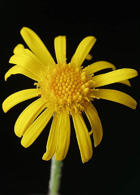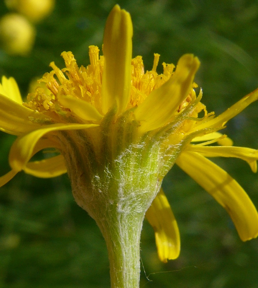Pflanze 30 - 80 cm Köpfchen 20 - 30 mm im Durchmesser Blüten mit 15 - 21 Zungenblüten Köpfe ohne Außenhülle Hüllblätter grün, +/- spinnwebig behaart, meist 13