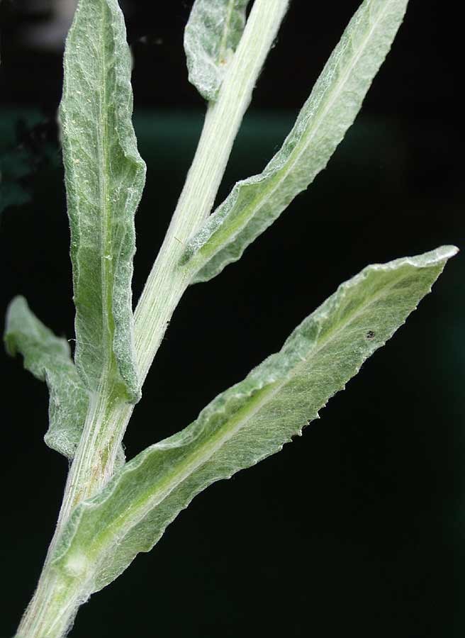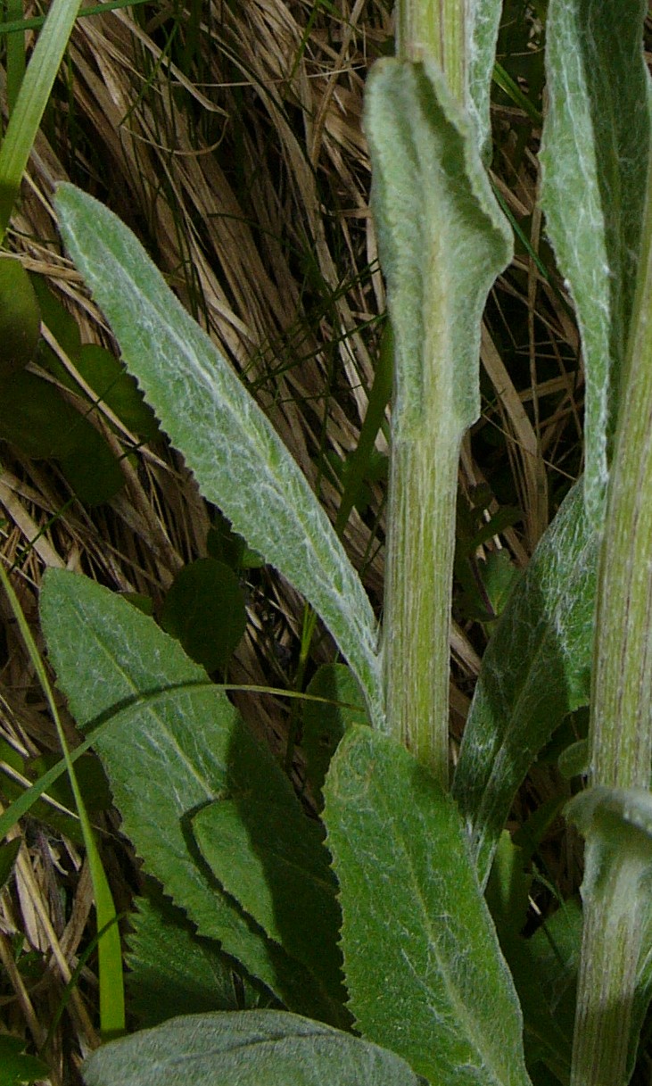 Frucht behaart Stängelblätter gezähnt Grundblätter lanzettlich, 1,5 - 3 cm breit, aufrecht, zur Blütezeit oft verwelkt, grob gezähnt, Blattgrund meist in den Stiel verschmälert