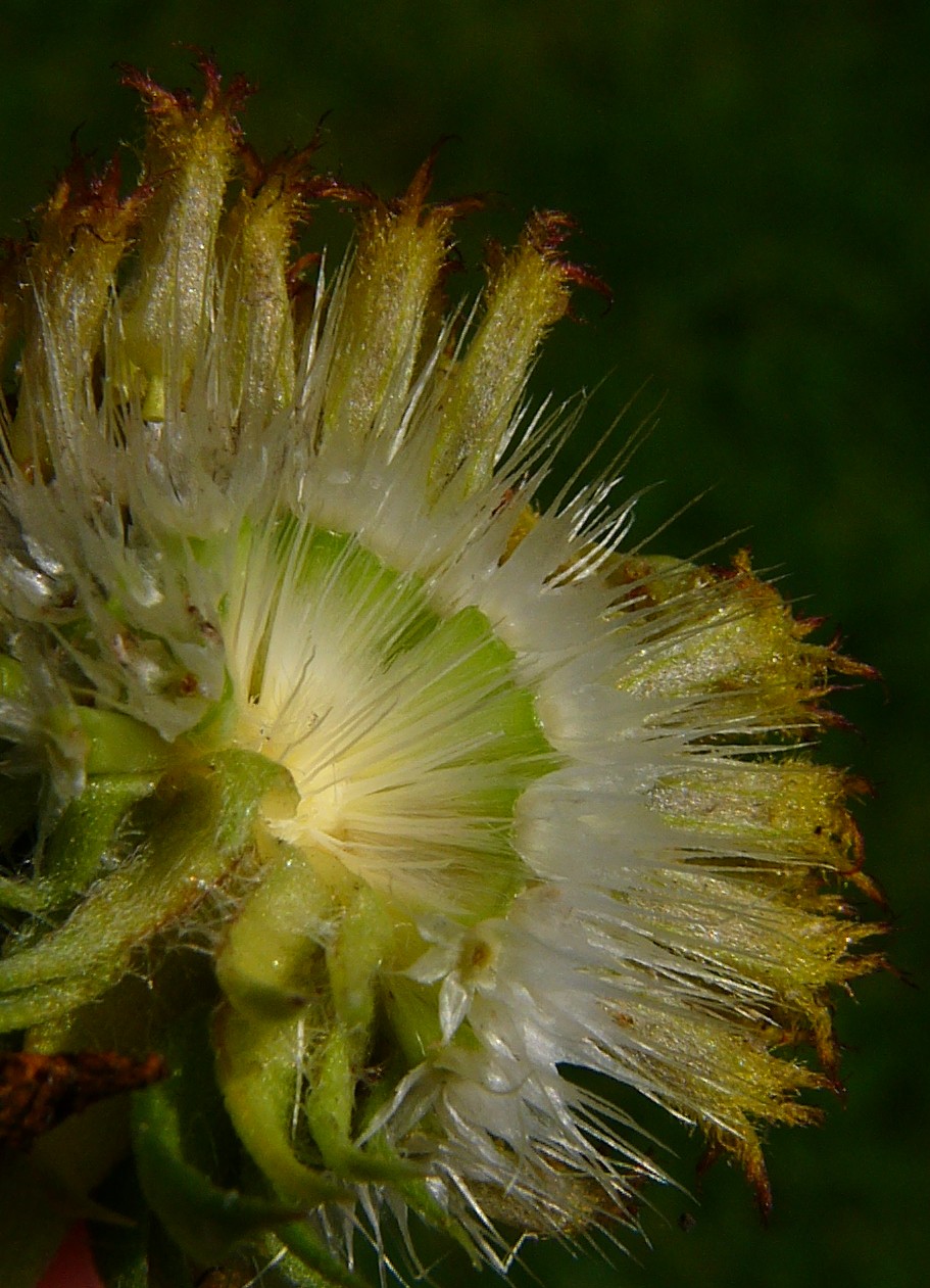 Röhrenblüten unten gelblich, oben dunkelrot, behaart, Griffeläste lang behaart