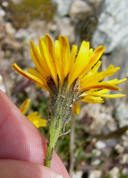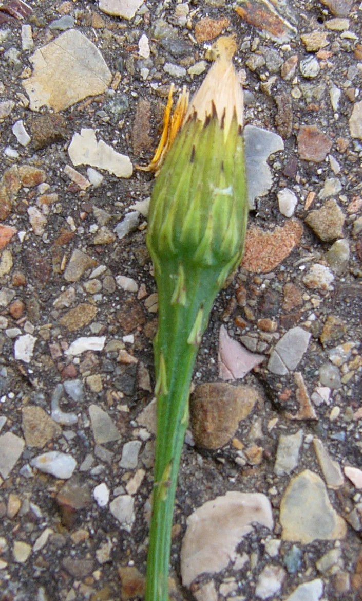 Pflanze 15 - 45 cm groß Köpfchen vor dem Blühen aufrecht Krone goldgelb, Narbe grüngelb Stiele nach oben allmählich verdickt Hülle kahl oder behaart Stängel im oberen Teil mit vielen kleinen Blattschuppen Pappus federig, schmutzigweiß