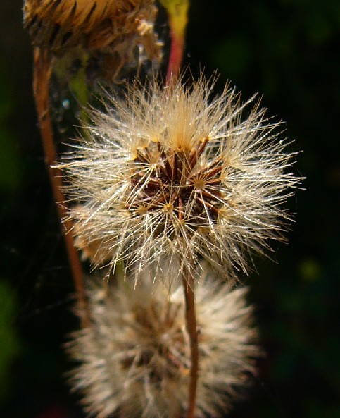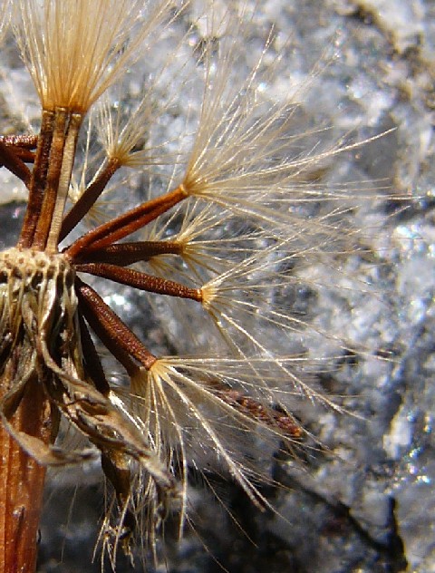 Krone goldgelb, Stiele nach oben etwas verdickt, Randblüten unterseits gelb, Pappus schneeweiß