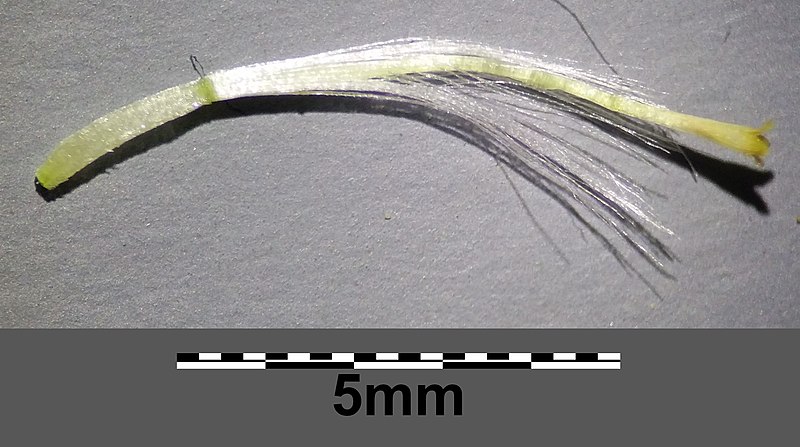 Früchte 2 mm lang, behaart, Pappushaare weiß, 5 - 7 mm lang
