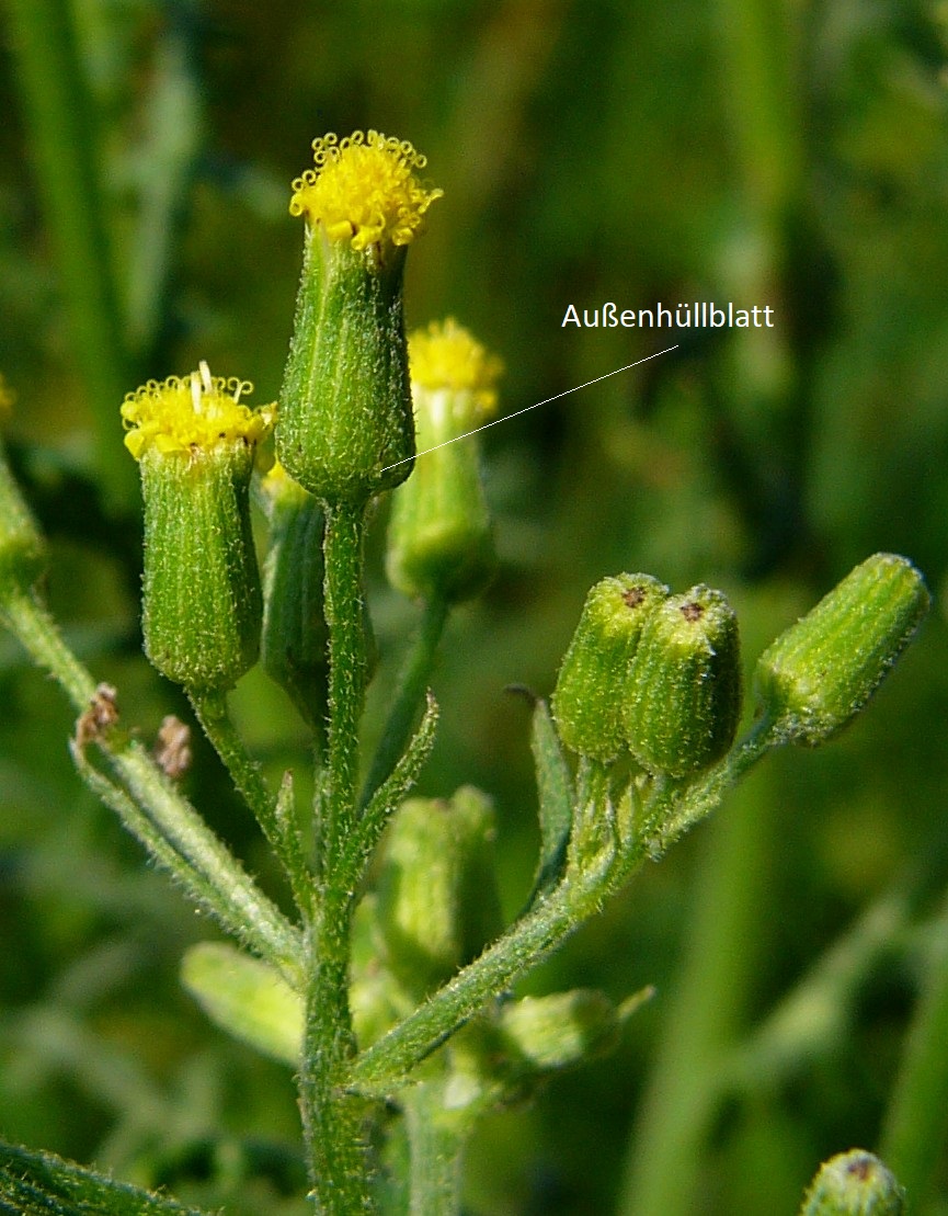 2 Köpfchen behaart, wenig klebrig, ohne oder mit 1 - 8 oft eingerollten Zungenblüten, Außenhüllblätter kurz