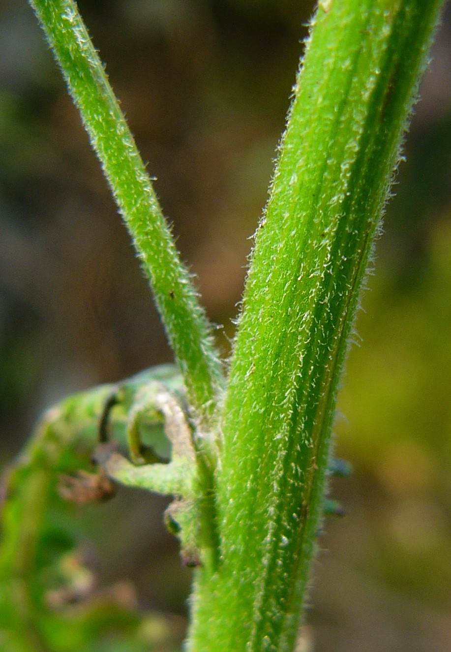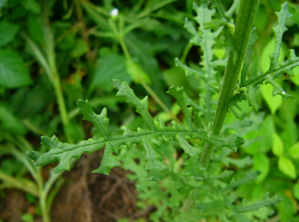 Früchte ca. 3 mm lang, braunschwarz, Pappushaare 5 - 6 mm lang, weiß, nicht federig Stängel weichhaarig, wenig klebrig Stängelblätter 2 - 9 cm lang, 2 - 50 mm breit, tief fiederteilig, mit schmalen Zipfeln Blätter oberseits fast kahl bis dicht anliegend behaart, sitzend, Blattabschnitte gezähnt