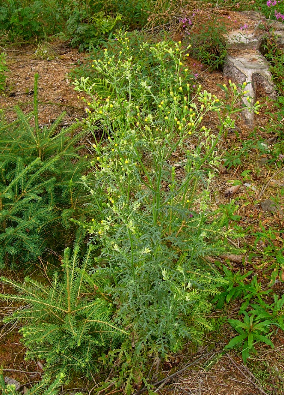 Senecio - Blätter fiederteilig, Köpfchen ohne sichtbare oder nur mit kurzen Zungenblüten