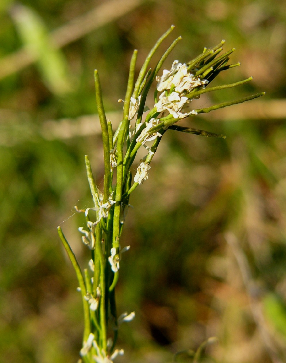 Pflanzen 10 - 50 cm hoch Blütenstände mit bis zu 40 Blüten Kelchblätter 2 - 2,5 mm lang, 1 mm breit, elliptisch, kahl, die beiden seitlichen ausgesackt Schoten locker stehend, nicht streng parallel zum Stängel, voll ausgebildete Schoten auch unter 3 cm, Mittelnerv auch im oberen Teil deutlich (an trockenen Früchten mit Lupe!) Stängel zumindest im unteren Teil langhaarig, Stängelblätter