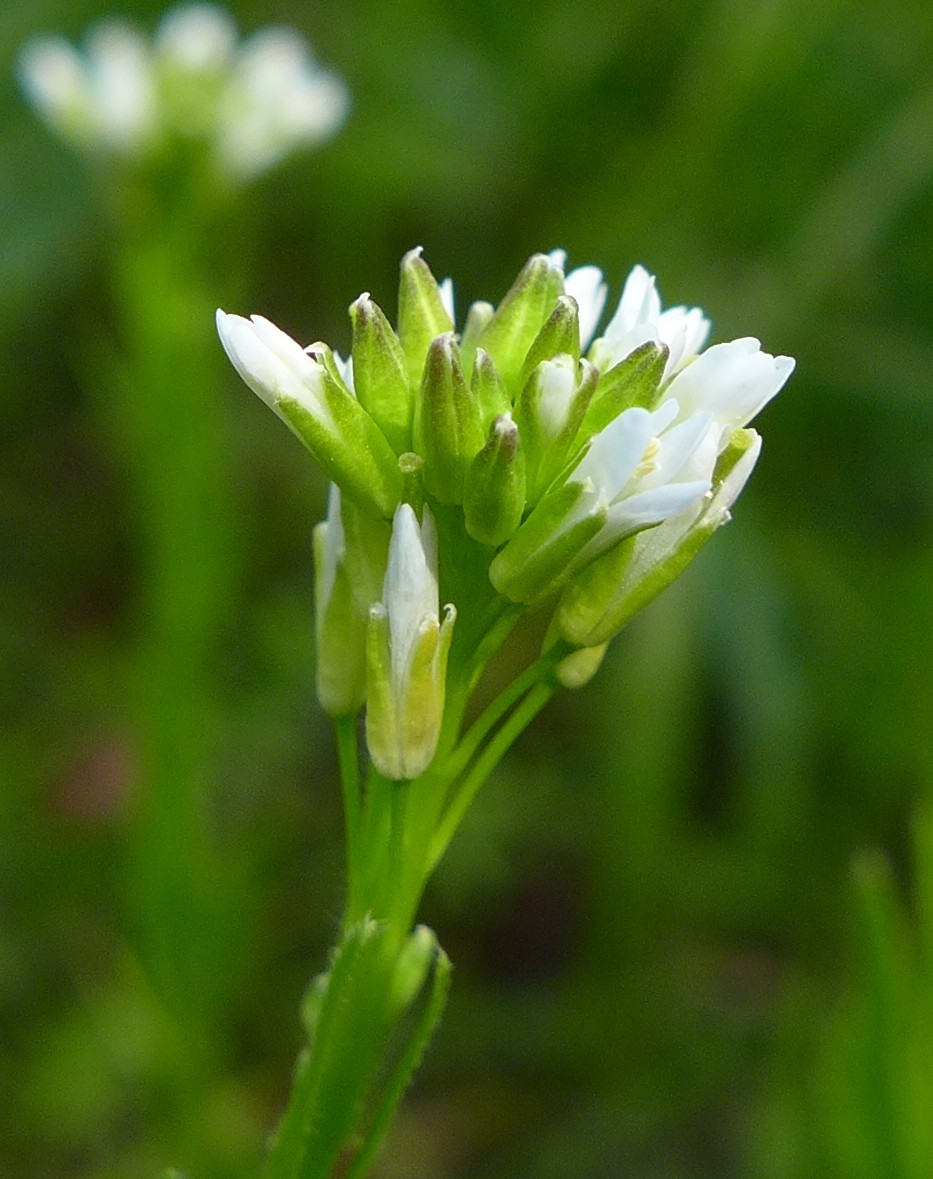 Blütenstand 20 - 40- blütig Kronblätter rein weiß, 5 - 7 mm lang Kelchblätter 3 - 4 mm lang, 1 mm breit, elliptisch, kahl, die beiden seitlichen ausgesackt