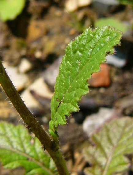 Stängel oben +/- kahl, unten borstig behaart Blätter sehr vielgestaltig: Untere Blätter gestielt, leierförmig gefiedert, mit großem Endabschnitt