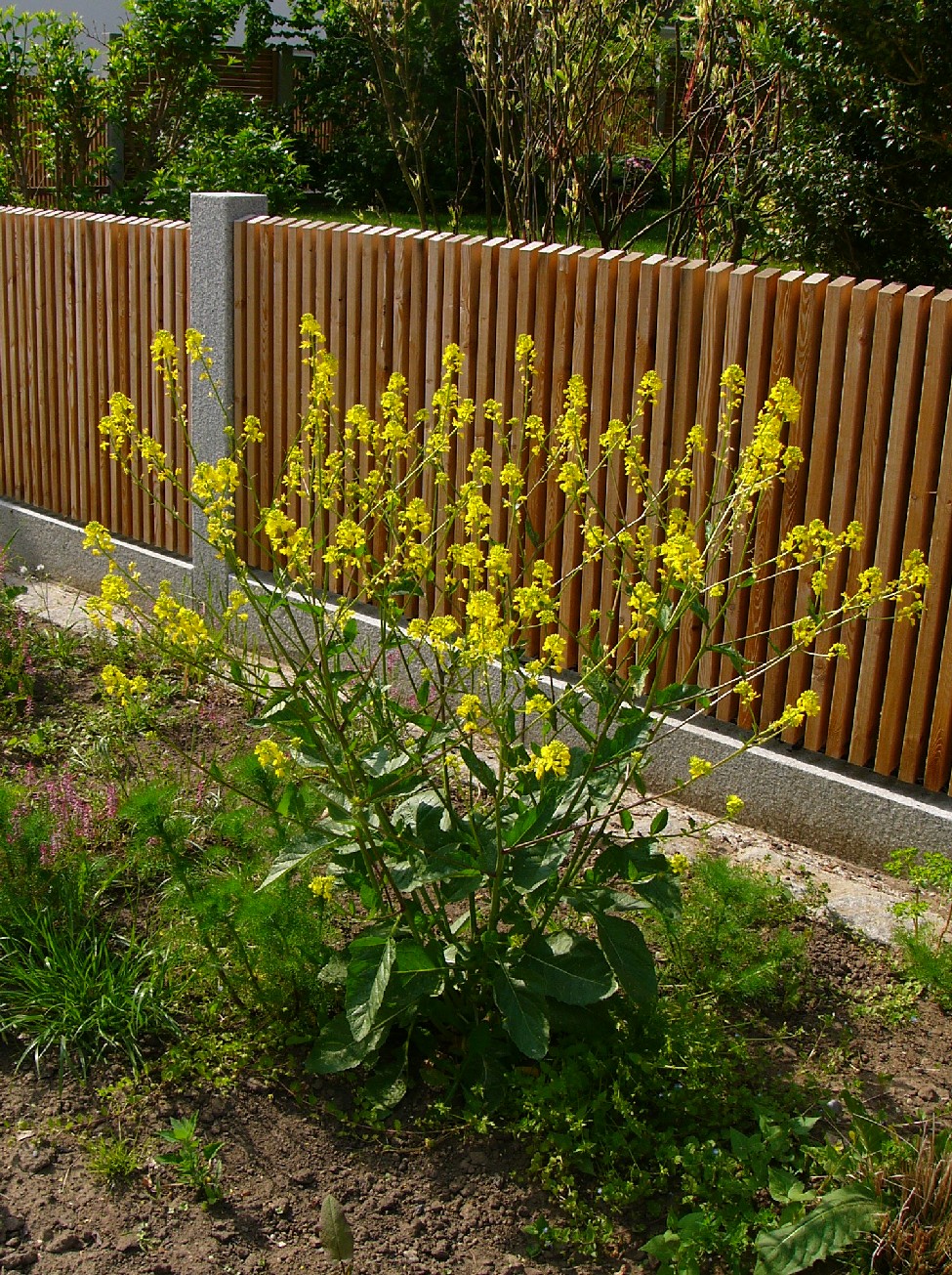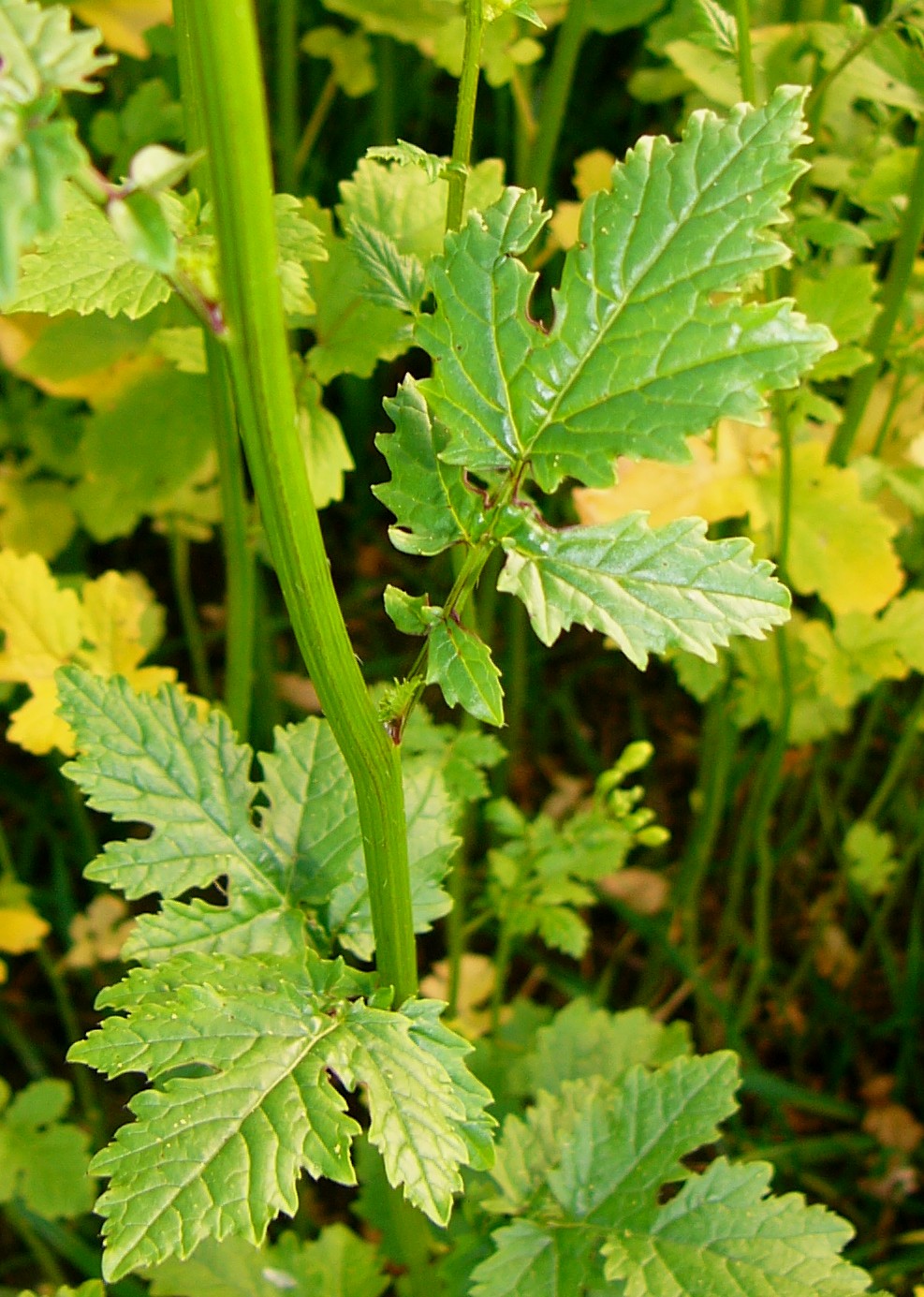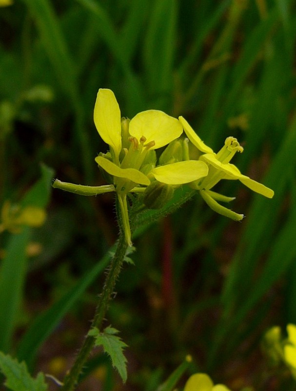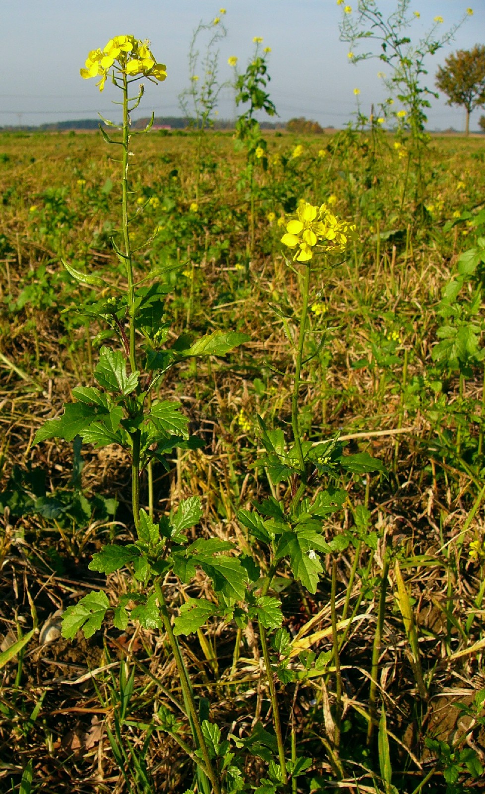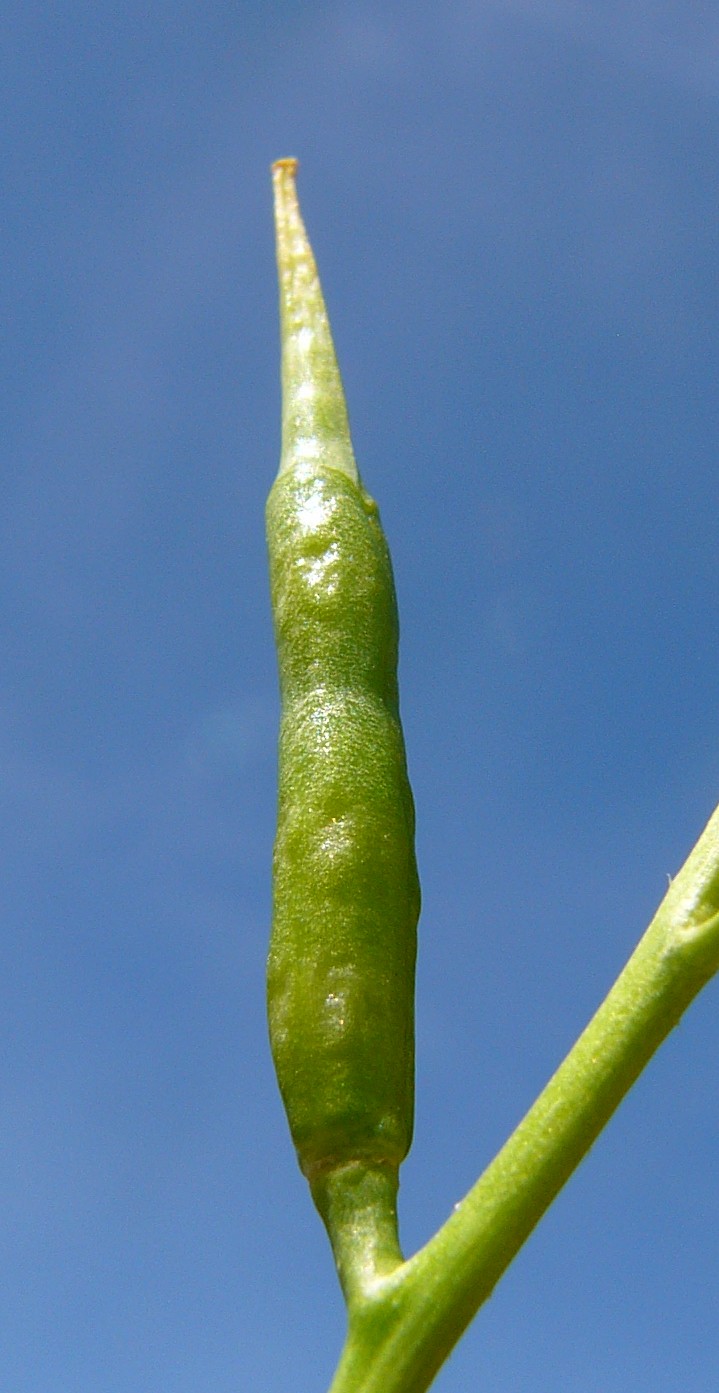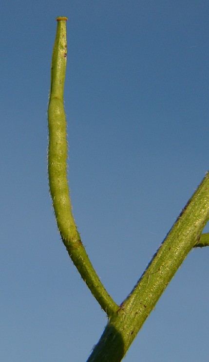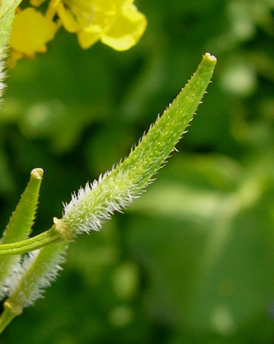 Meist kultiviert Mittlere Stängelblätter fiederschnittig, mit gebuchtetem Rand Fruchtschnabel schwertförmig, länger als der fertile Teil Schoten borstig behaart, enthalten 4 - 8 hellgelbe Samen > 1 |