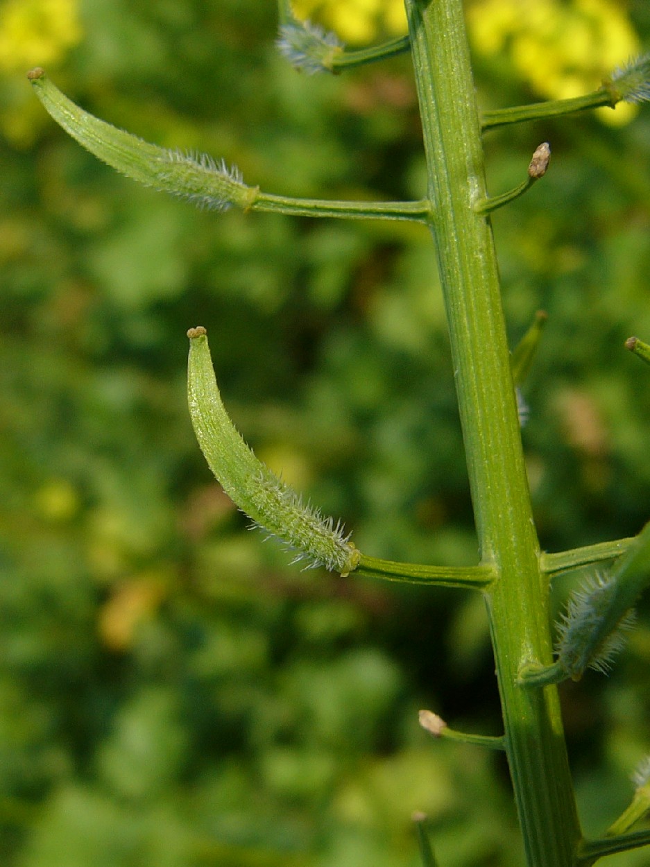 Wildpflanze Mittlere Stängelblätter grob gezähnt Fruchtschnabel kürzer als der fertile Teil Schoten kahl oder zerstreut behaart, enthalten 8 - 13 schwarze Samen, häufige Ruderalpflanze > 2