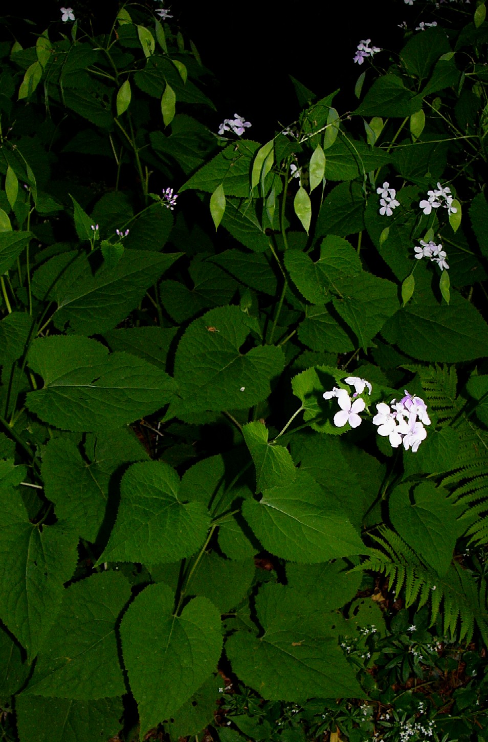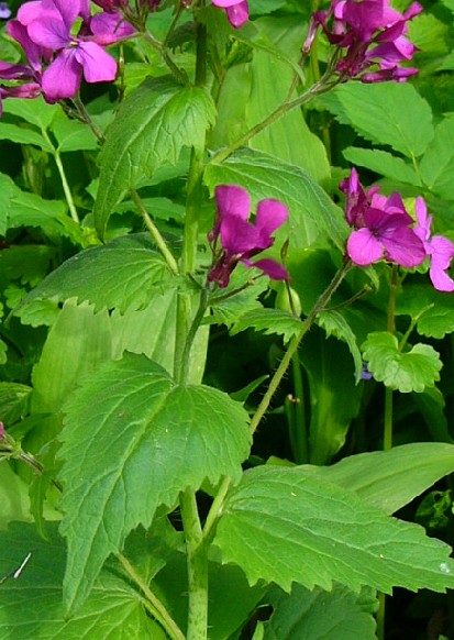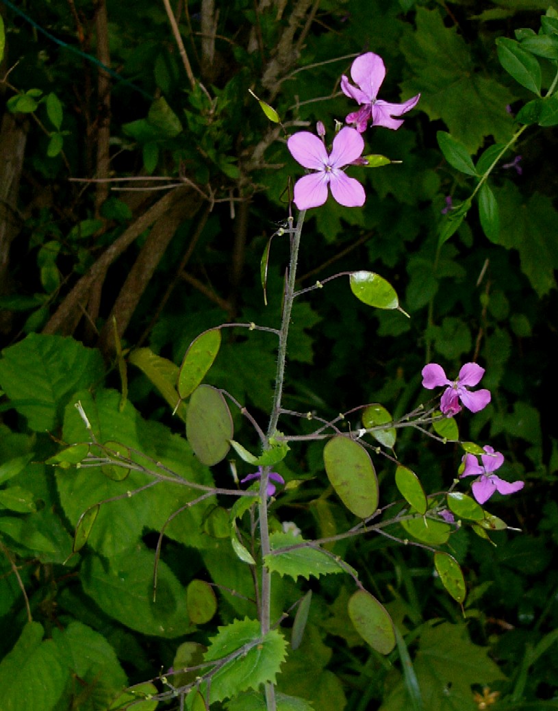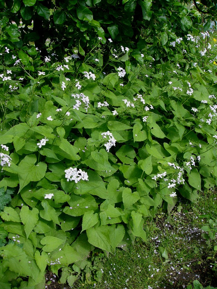Ausdauerndes Silberblatt (Lunaria rediviva L.) V - VII, Hangwälder Synonyme: English name: Verbreitung in Deutschland: Gefährdung in Deutschland: Weltweite Verbreitung: Eingebürgert in: Sind noch keine Früchte vorhanden könnte man die Art mit der Nachtviole (Hesperis matronalis) verwechseln. Diese Art hat jedoch länglich eiförmige und wesentlich schwächer gesägte Blätter.