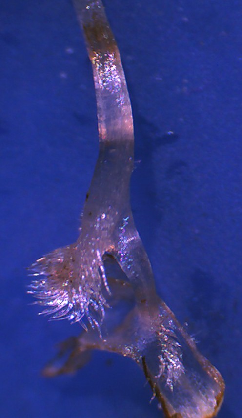 2 Blüten weiß oder violett, 7 - 9 mm groß