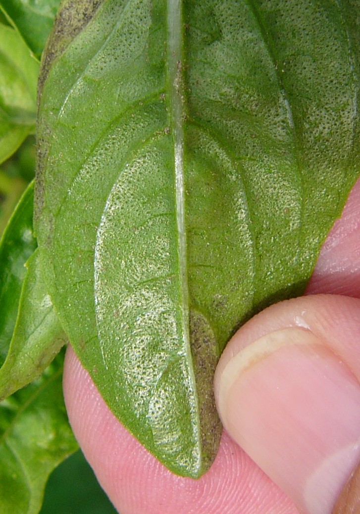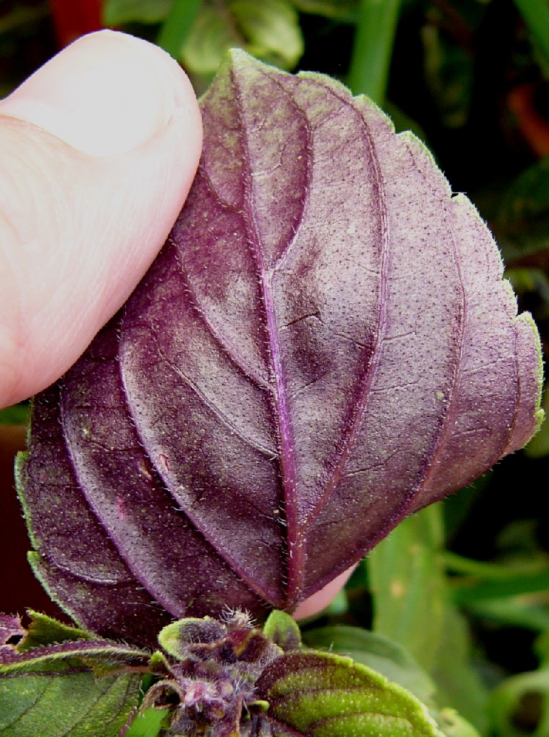 Blattunterseite violett, mit zahlreichen Drüsenpunkten